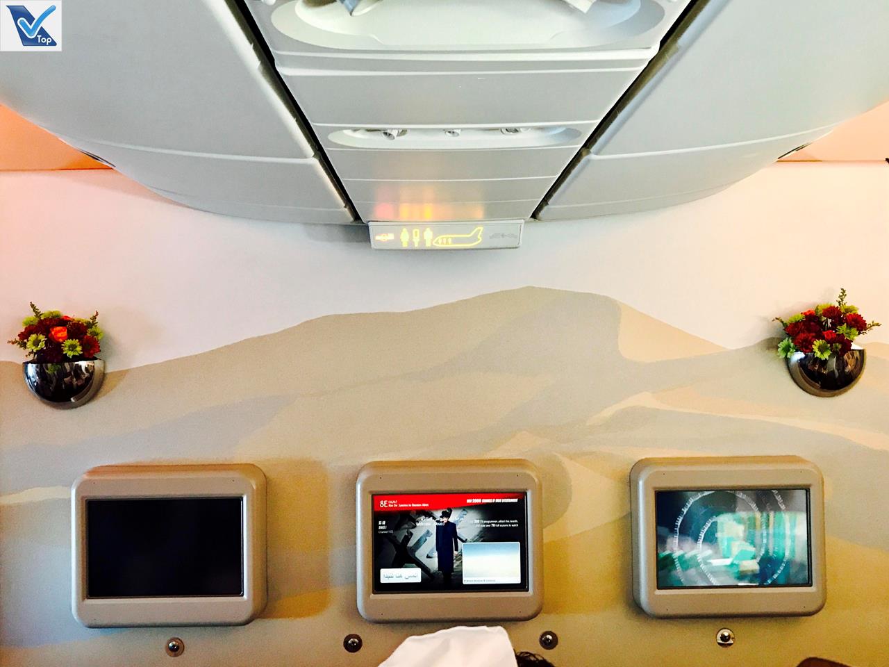 – as flores na parede que divide as seções das cabines trazem mais um toque especial da EMIRATES para o interior da aeronave