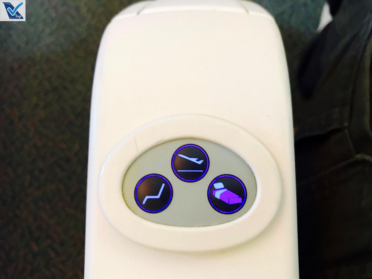 – o assento da Executiva reclina 180 graus (com alguma inclinação), virando uma confortável cama; para controlar, o comando tem apenas 03 botões e está instalado na ponta do braço da poltrona