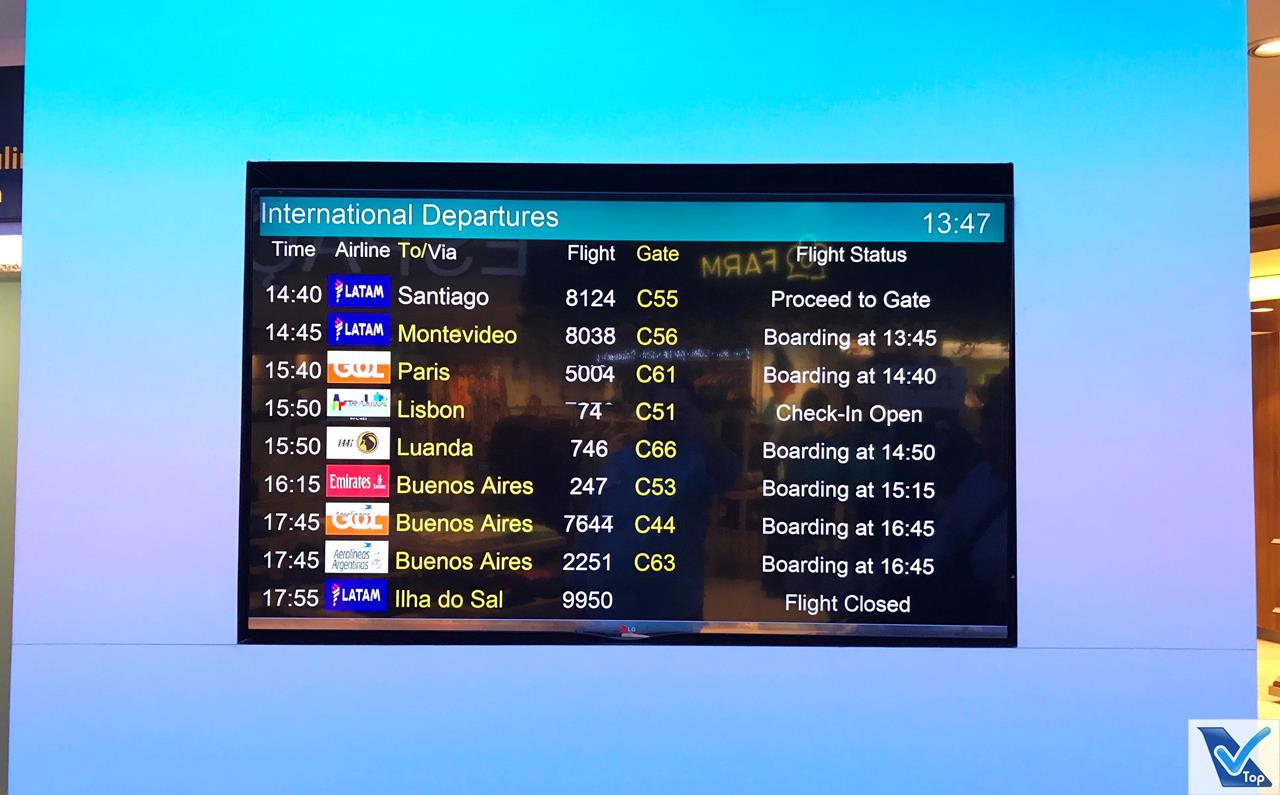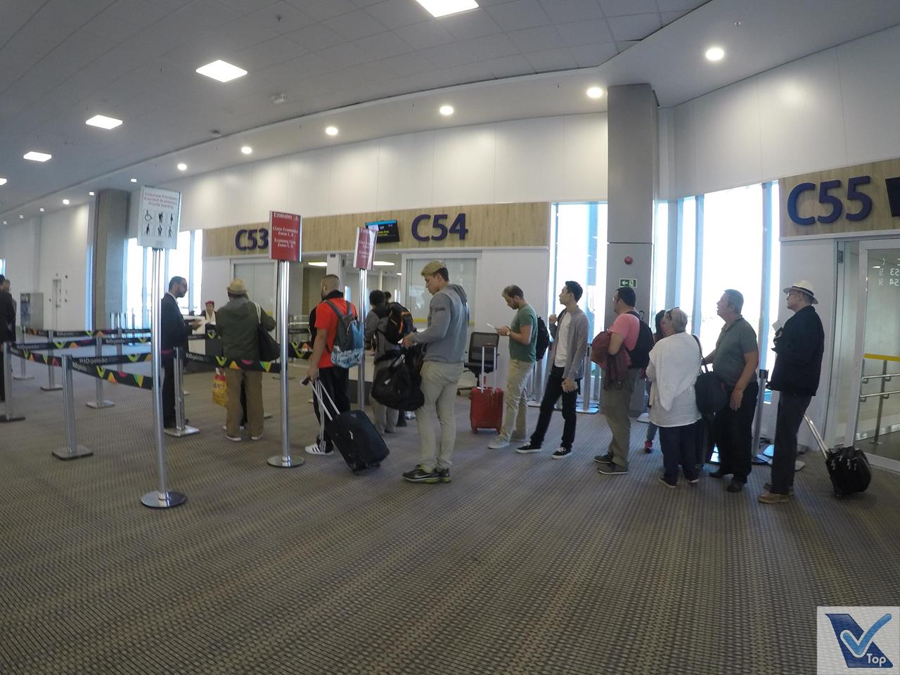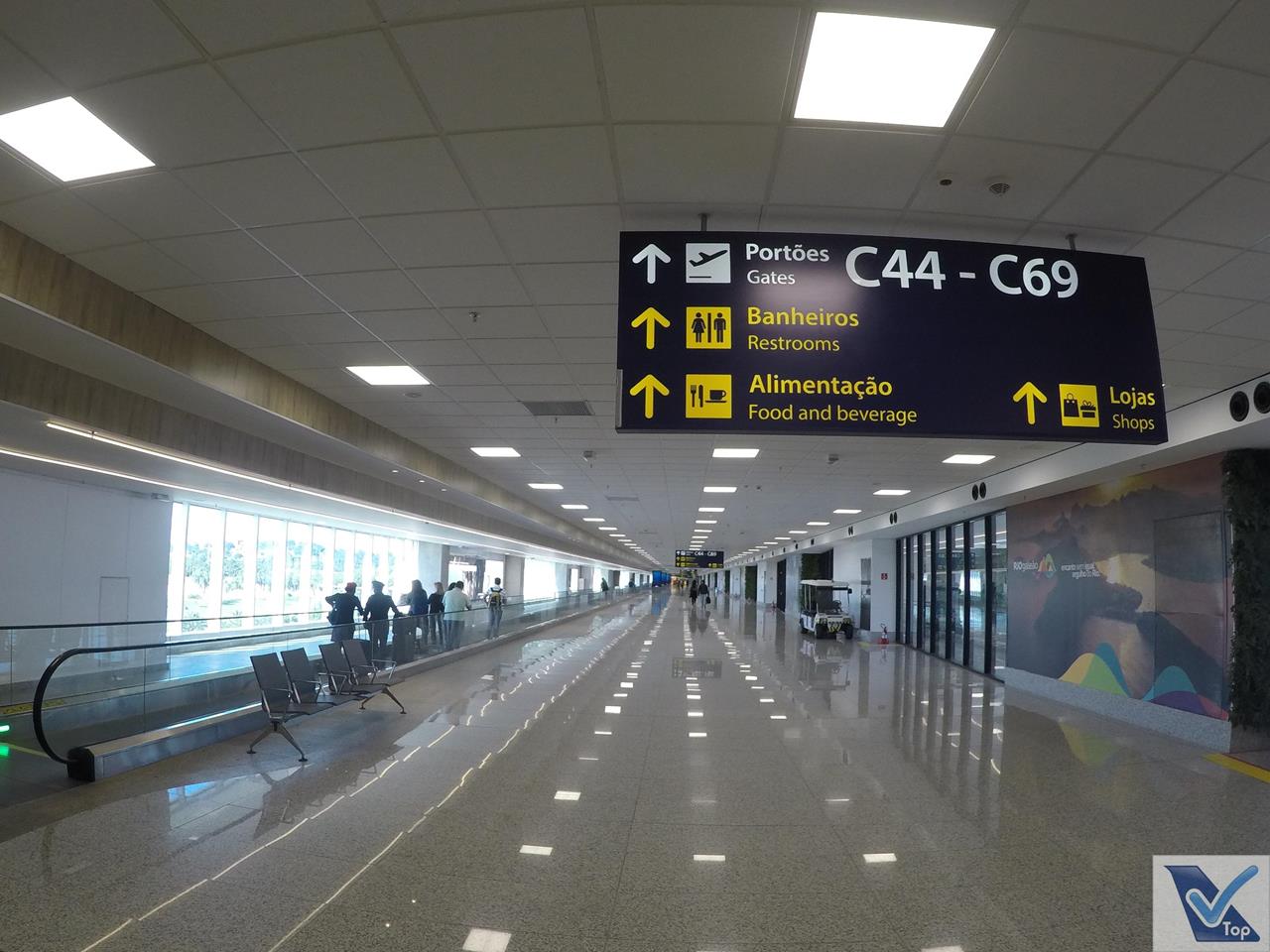 – no caminho até os portões de embarque, os passageiros são obrigados a passar por uma gigantesca loja de Free Shop e depois por uma pequena praça de alimentação; depois, é preciso subir uma escada rolante e passar por mais uma loja de Free Shop; os portões “B” ficam logo a direita (trata-se da antiga área internacional do Terminal 2 do GIG) e a esquerda tem um looooooongo corredor com esteiras rolantes que levam à área dos portões “C”; no total, o trajeto do check-in até o portão C53 levou um pouco mais de 20 minutos (a administração do aeroporto oferece um carrinho elétrico para pessoas com dificuldade de locomoção, somente entre 06h-10h e 18h-22h)