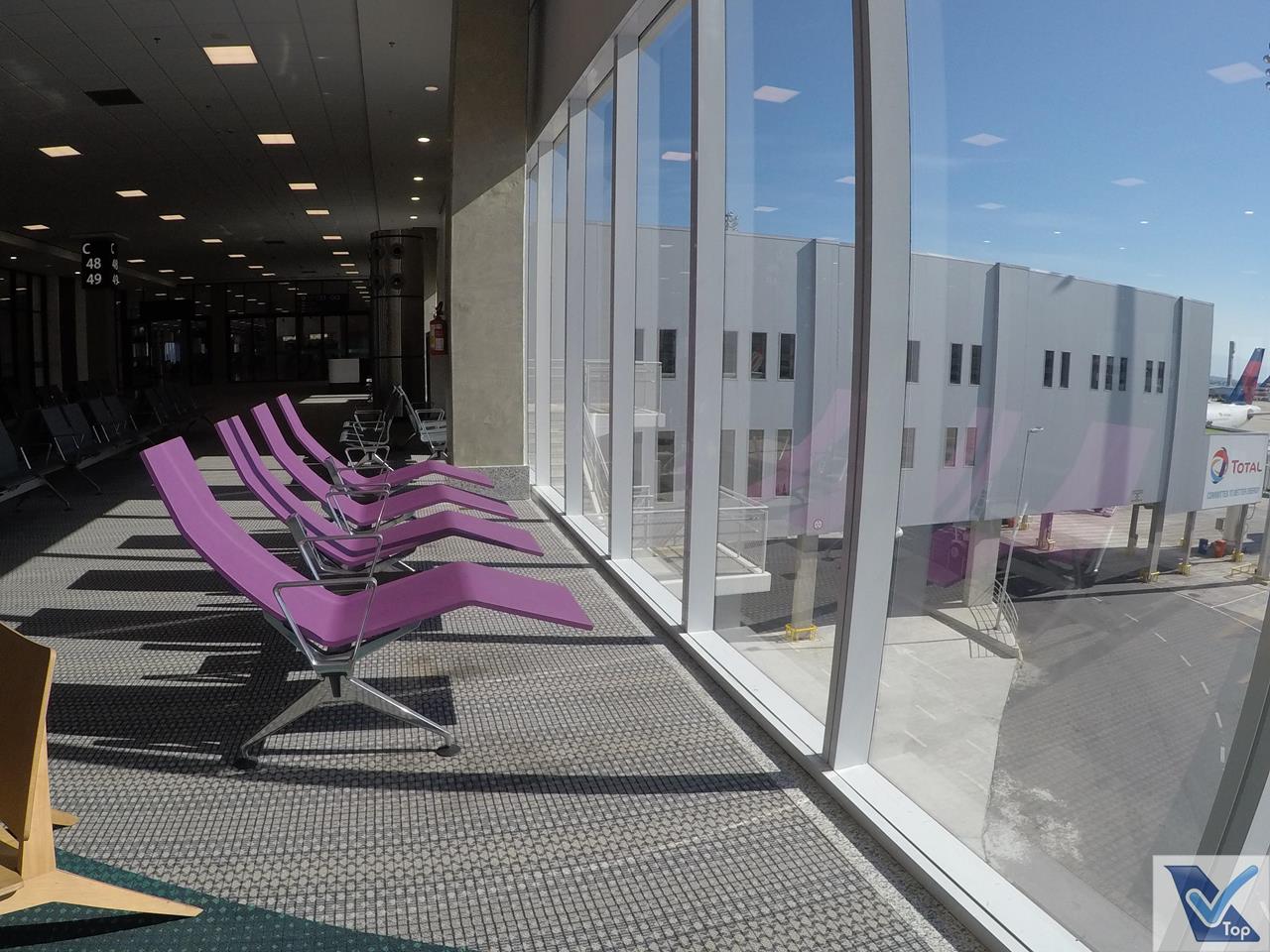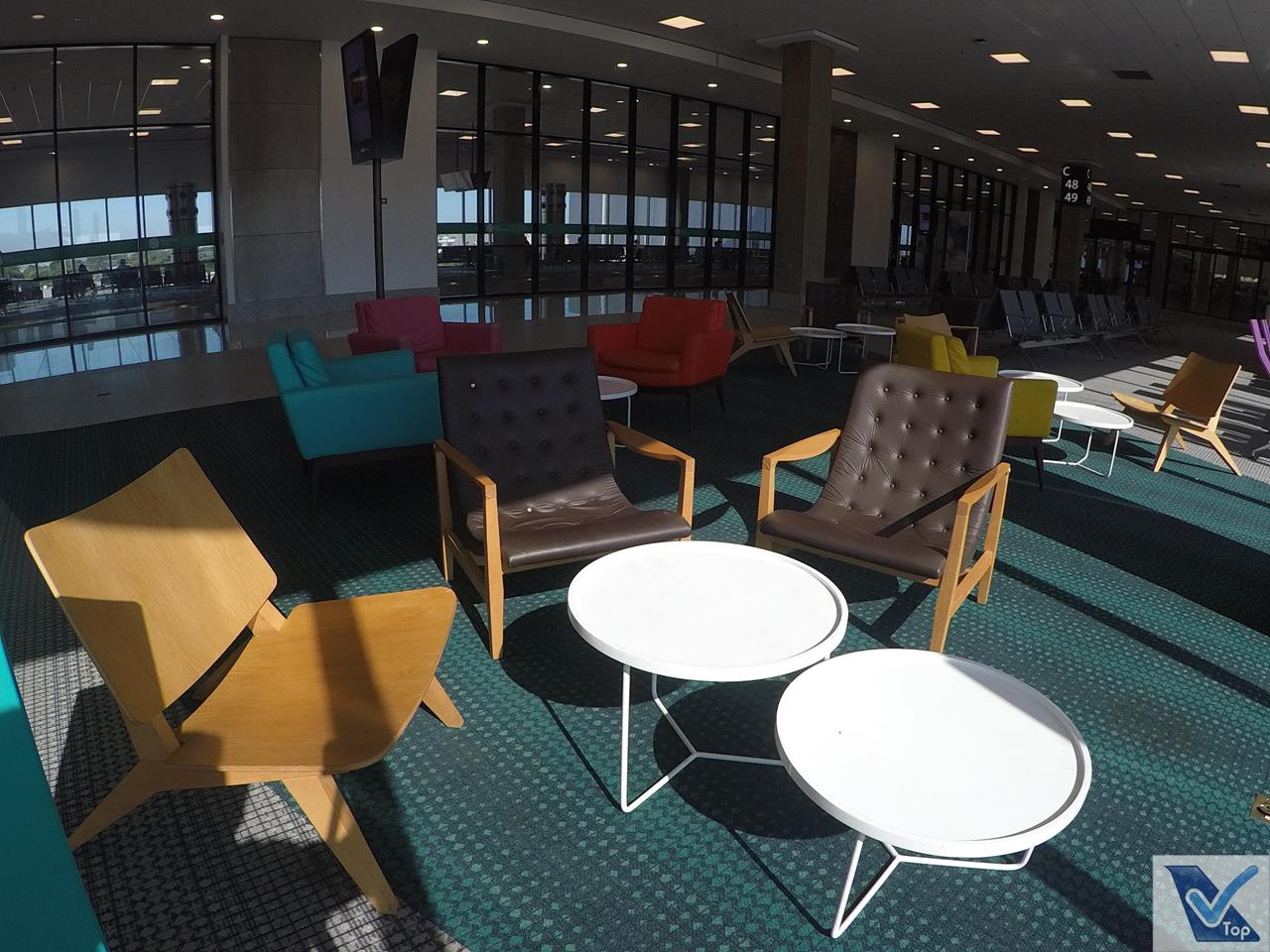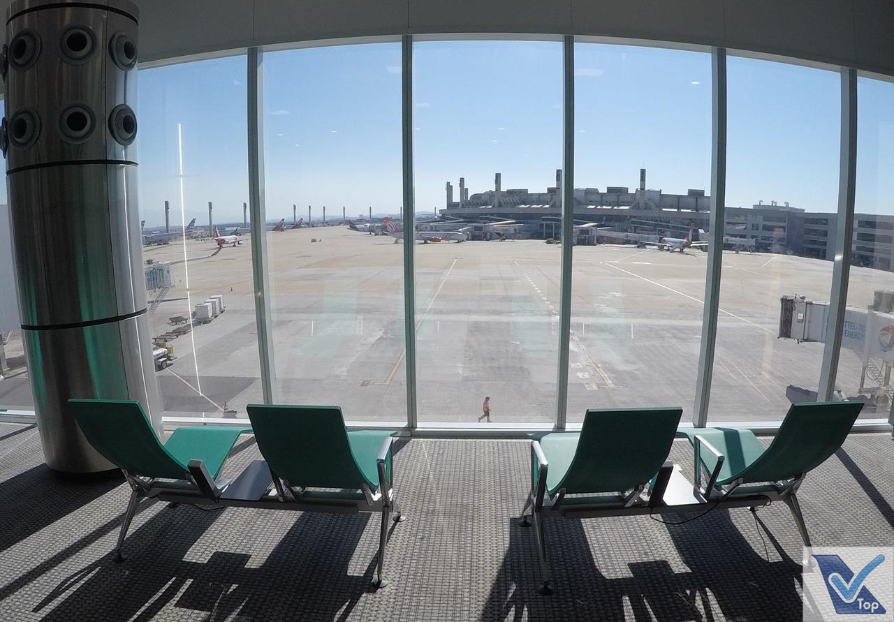 – eram 15:30h quando decidi ir logo para a área de embarque, antes mesmo do anúncio que seria feito pela rececpcionista “robô” pelo sistema de áudio da Sala VIP; a caminhada até o portão C53 durou menos de 10 minutos, esteiras rolantes ajudam no deslocamento; no meio do caminho, há uma área com poltronas mais confortáveis e também espreguiçadeiras viradas para as grandes janelas, com ampla visão para o pátio de manobras das aeronaves