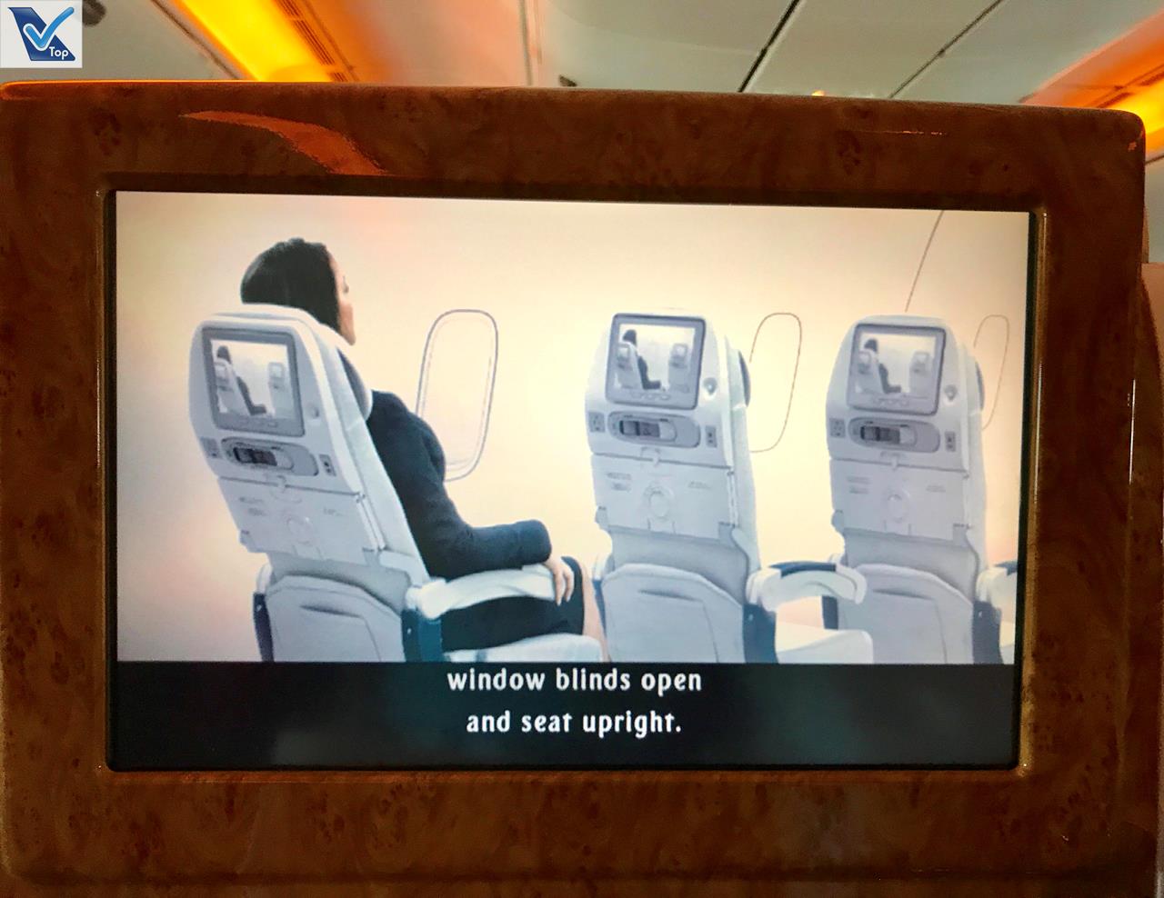 – as instruções de segurança são apresentadas aos passageiros no sistema de vídeo (que é individual para todos os passageiros, inclusive na Econômica)