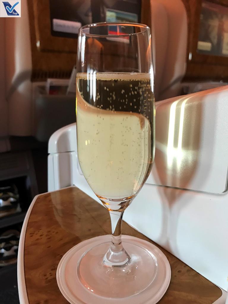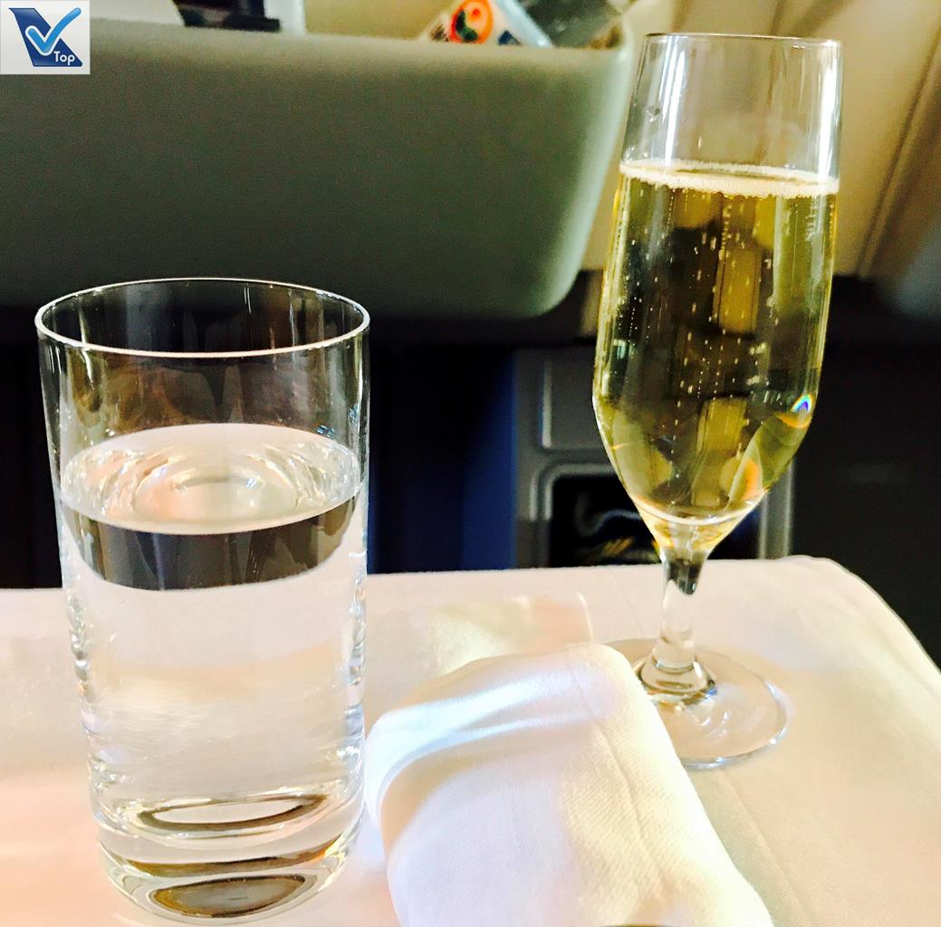– enquanto arrumava minhas coisas, a comissária Ines, uma portuguesa super simpática, educada e atenciosa, se apresentou e ofereceu o tradicional welcome drink: champagne de 1ª qualidade (Veuve Cliquot), simplesmente uma delícia, servido na temperatura ideal