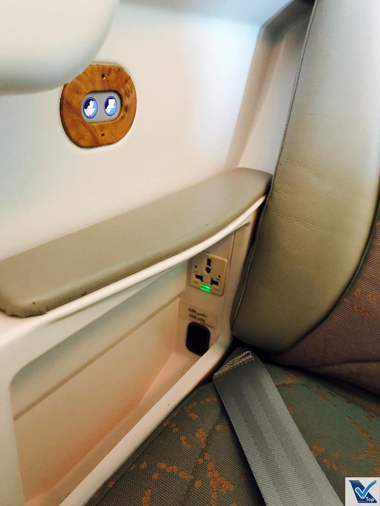 – na poltrona, na coluna central, abaixo do controle remoto, estão instaladas 02 portas USB e uma tomada universal, é possível carregar vários equiapmentos eletrônicos ao mesmo tempo; a localização poderia ser melhor, mas não chega a ser tão ruim como nos B767 da LATAM; entre as poltronas, há uma divisória que pode ser levantada, para aumentar a privacidade