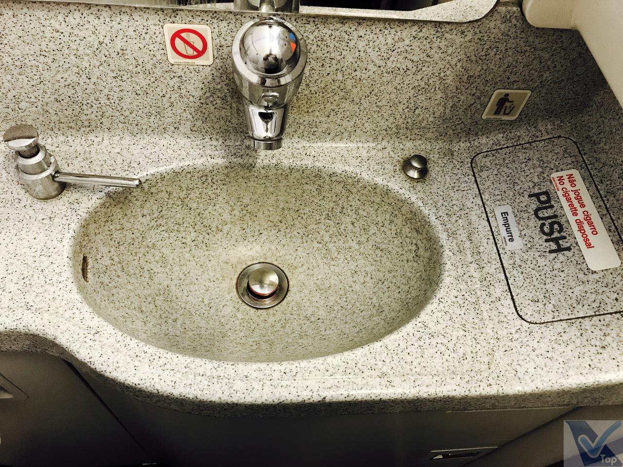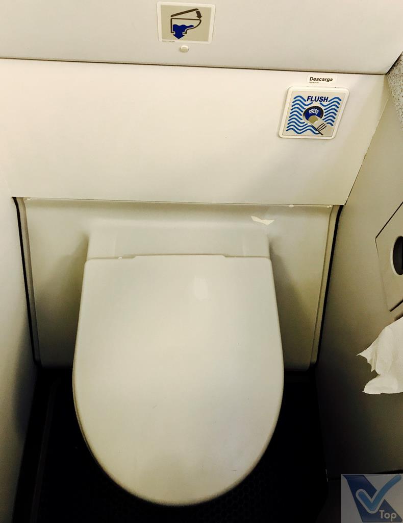 – incomodei um simpático casal que sentava ao meu lado e fui ao banheiro na parte de trás (são 03 no total: 02 nesta parte do A319 e mais 01 na parte da frente): apertado (como sempre neste modelo de aeronave de corredor único) e sem nenhuma amenidade oferecida aos passageiros