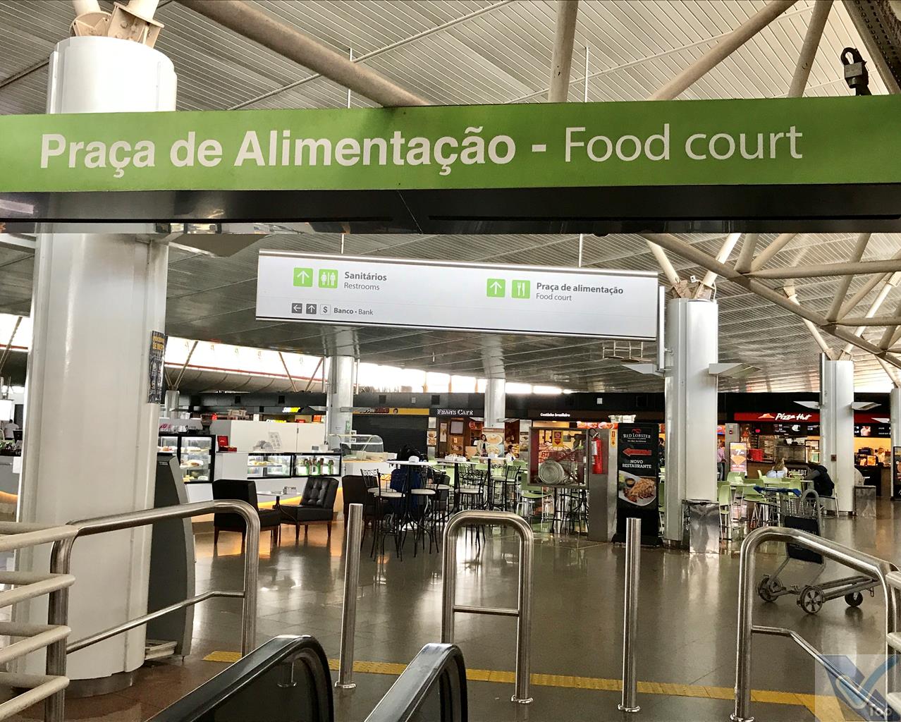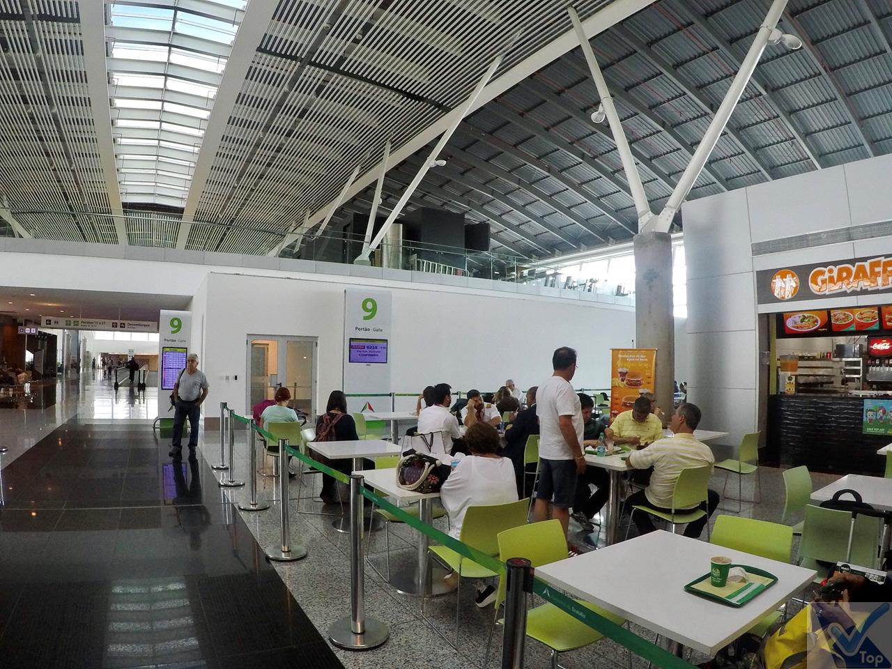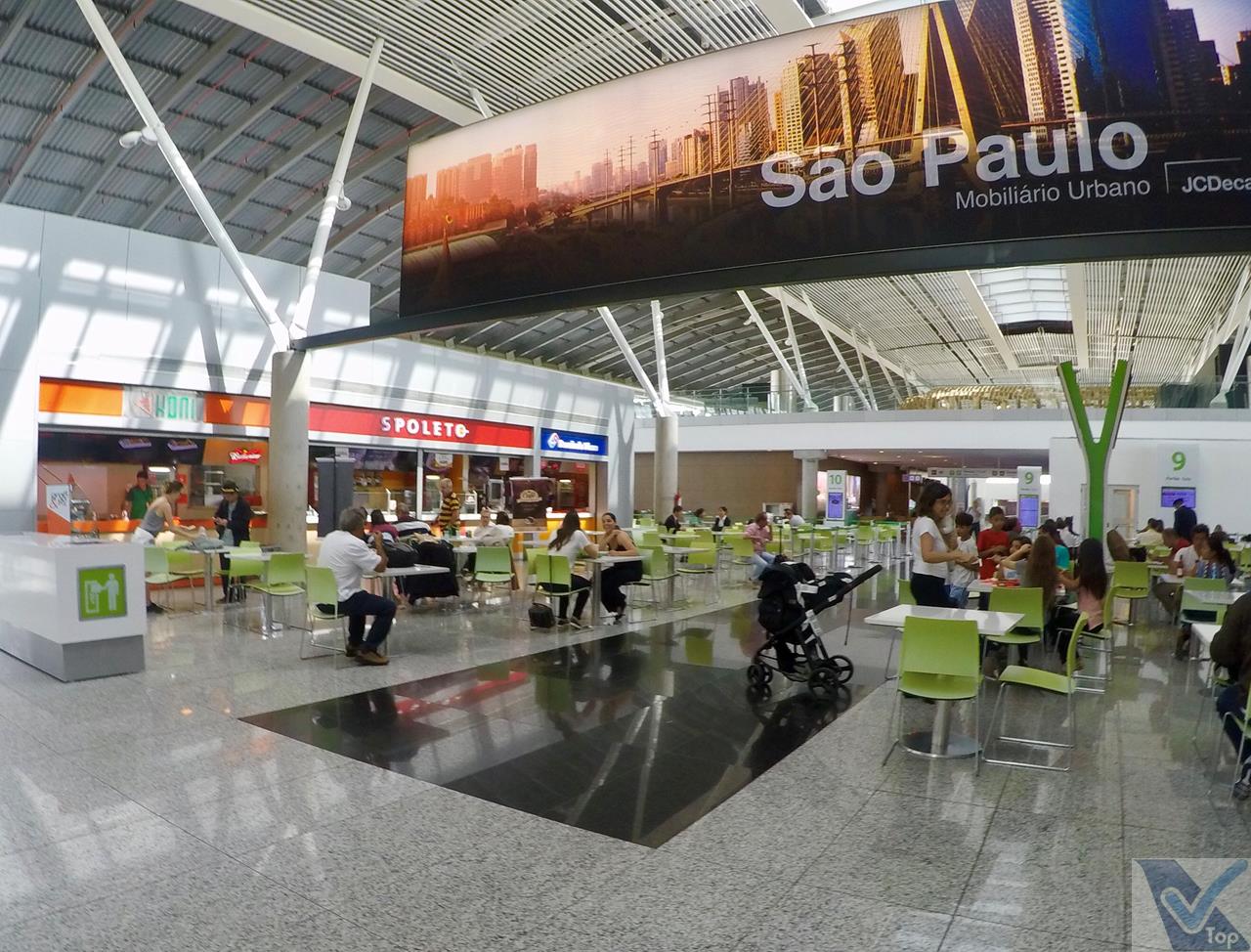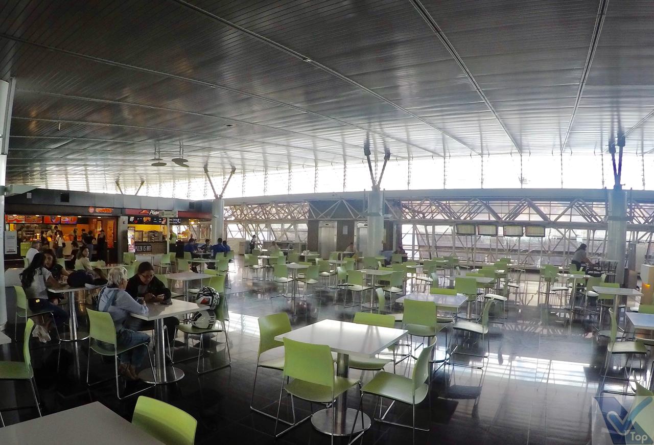 – caso os passageiros queiram matar a fome e a sede antes de passar pelos controles de segurança, no 2º andar (escadas rolantes e elevadores permitem o acesso a esta área) está instalada a Praça de Alimentação, com cerca de 10 opções de lanchonetes e restaurantes; há janelões de vidro que permitem ampla visão para o pátio de manobras das aeronaves; nesta área, há também 02 agências bancárias e uma casa lotérica