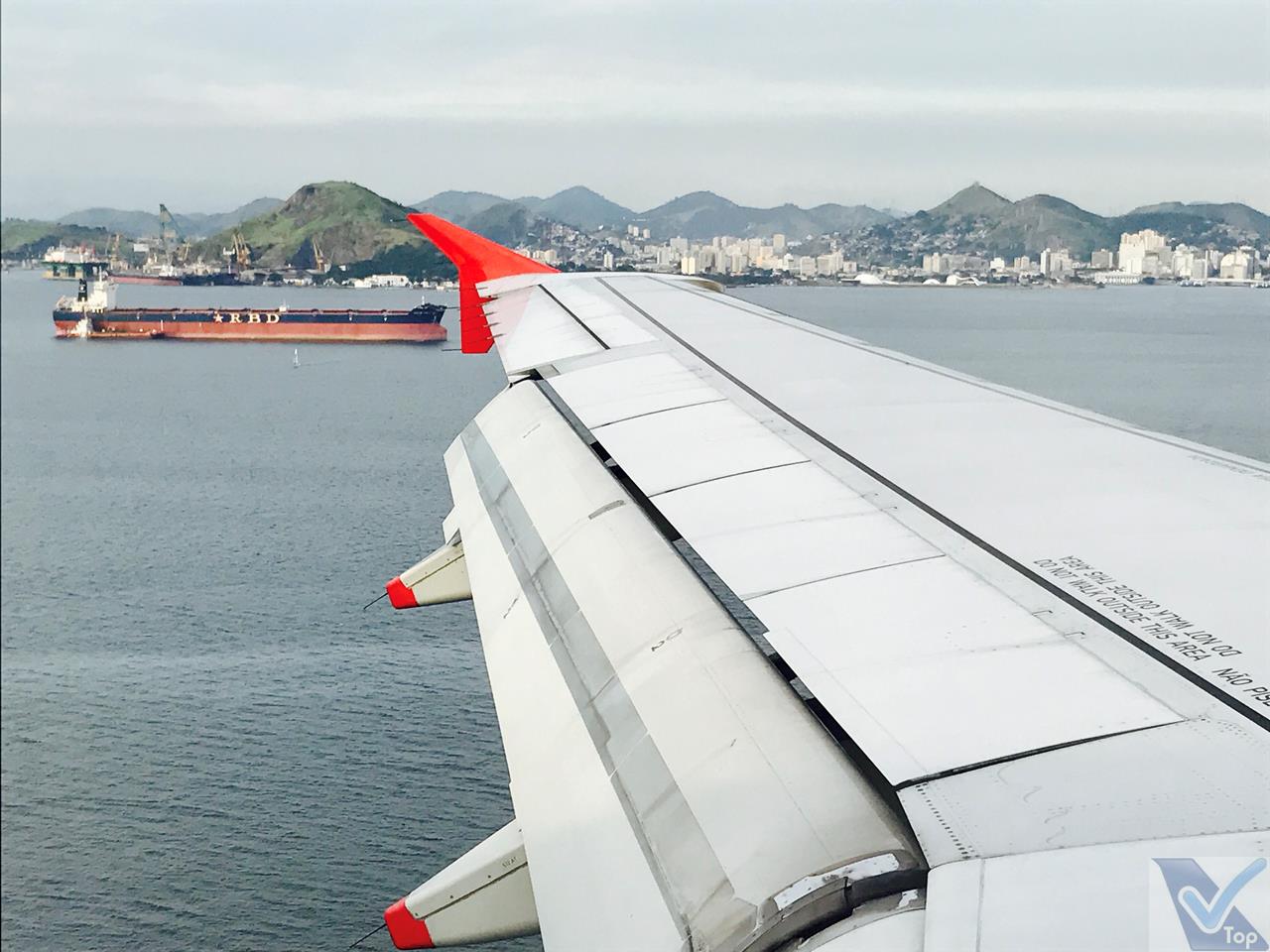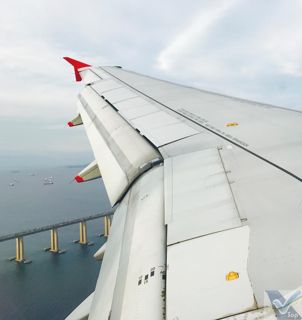 – o resto do voo foi tranquilo; eram 15:40h quando um anúncio da cabine de comando ordenou: “atenção tripulação, preparar para o pouso“; a aproximação foi feita pela rota que passa quase em cima do Galeão/GIG, aborda o Porto do Rio e a Ponte Rio-Niterói e faz o alinhamento final para pouso pela Baia de Guanabara