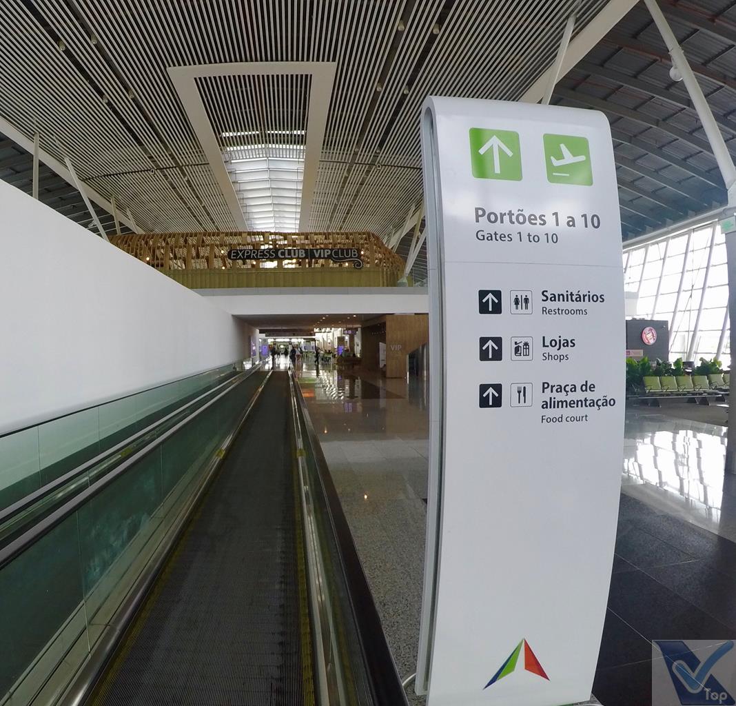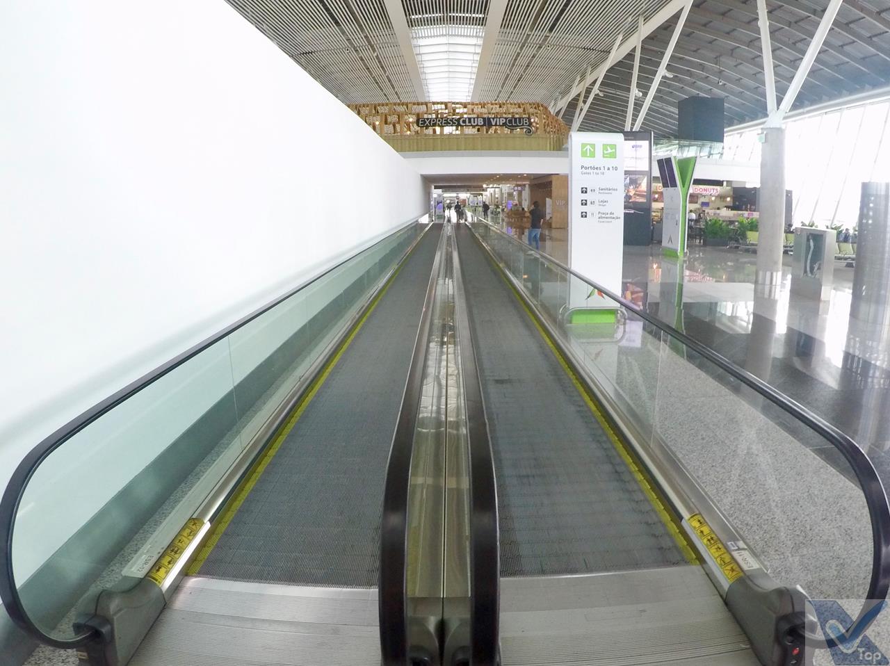 – os portões de 1 a 13 estão na parte esquerda do terminal e os portões 14 a 31 ficam na parte mais a direita; meu voo estava programado para o Portão 9; para acessar esta área, é preciso passar por um grande corredor; mais a frente, já perto da área de embarque, esteiras rolantes ajudam os passageiros no deslocamento