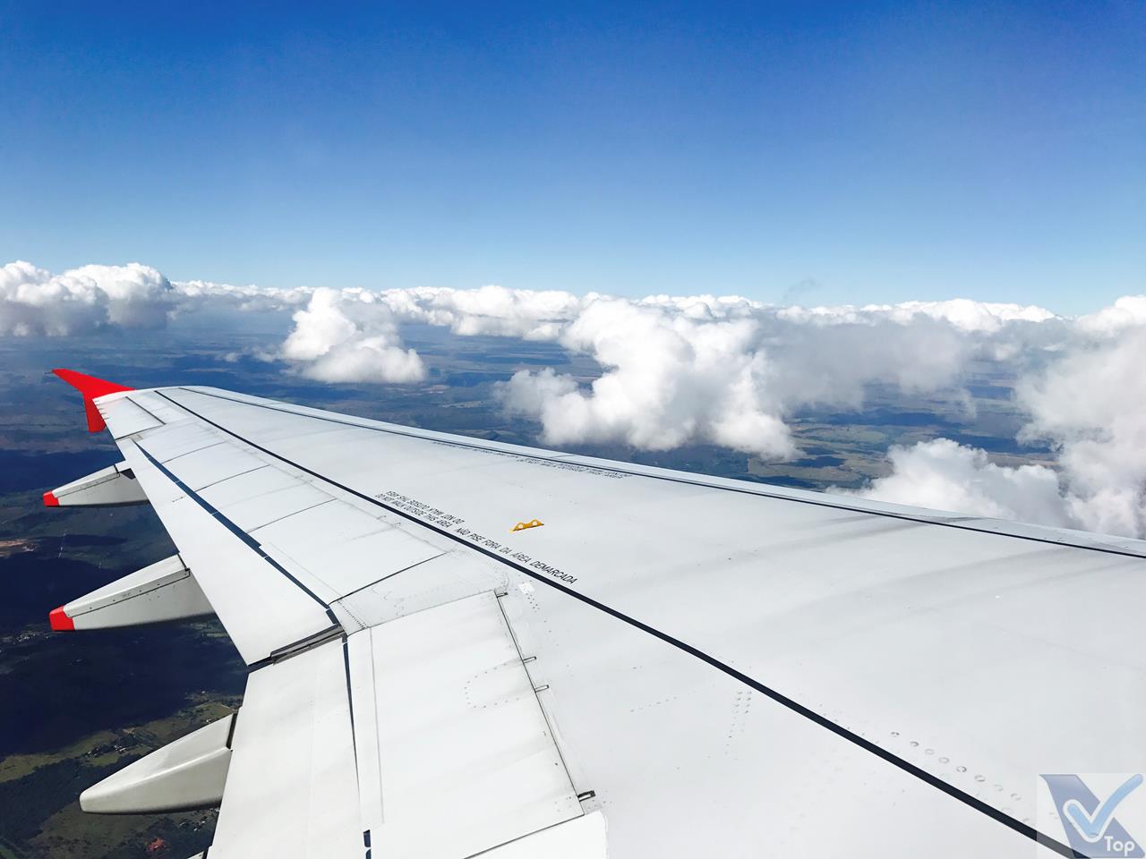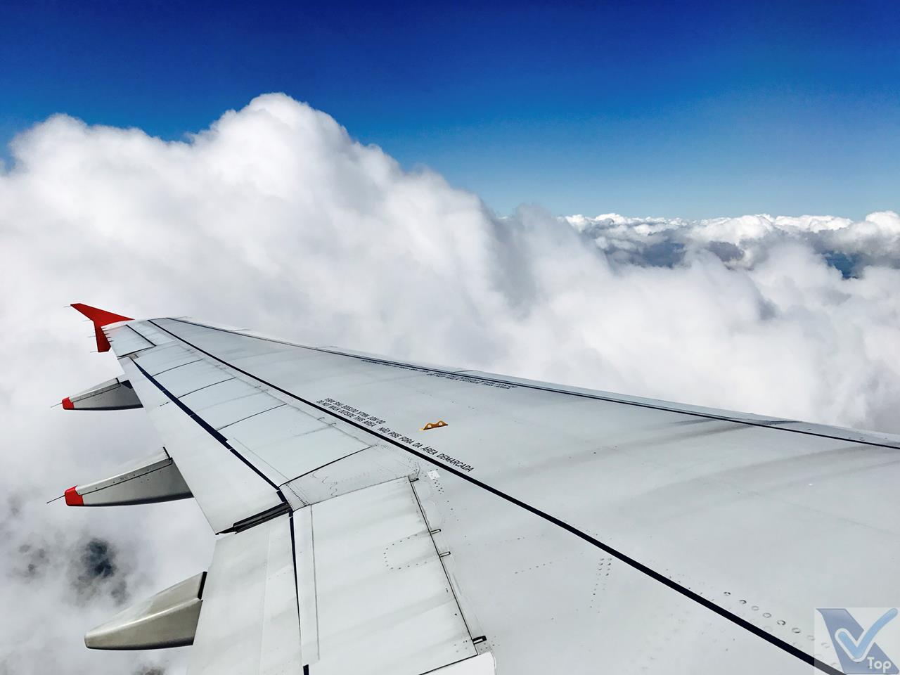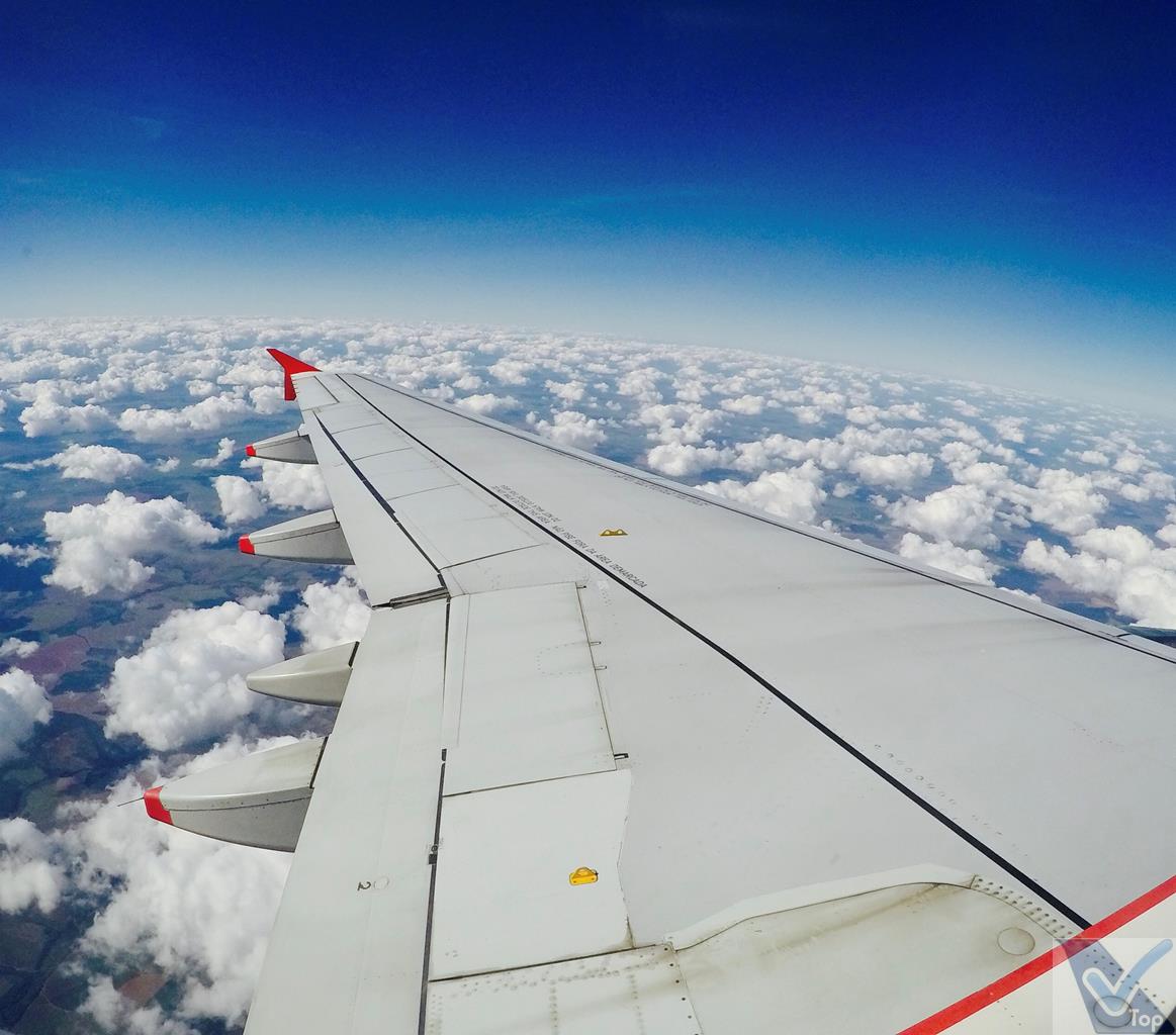 – na fase inicial do voo os passageiros sentados na janela puderam apreciar uma bela combinação de céu azul e nuvens