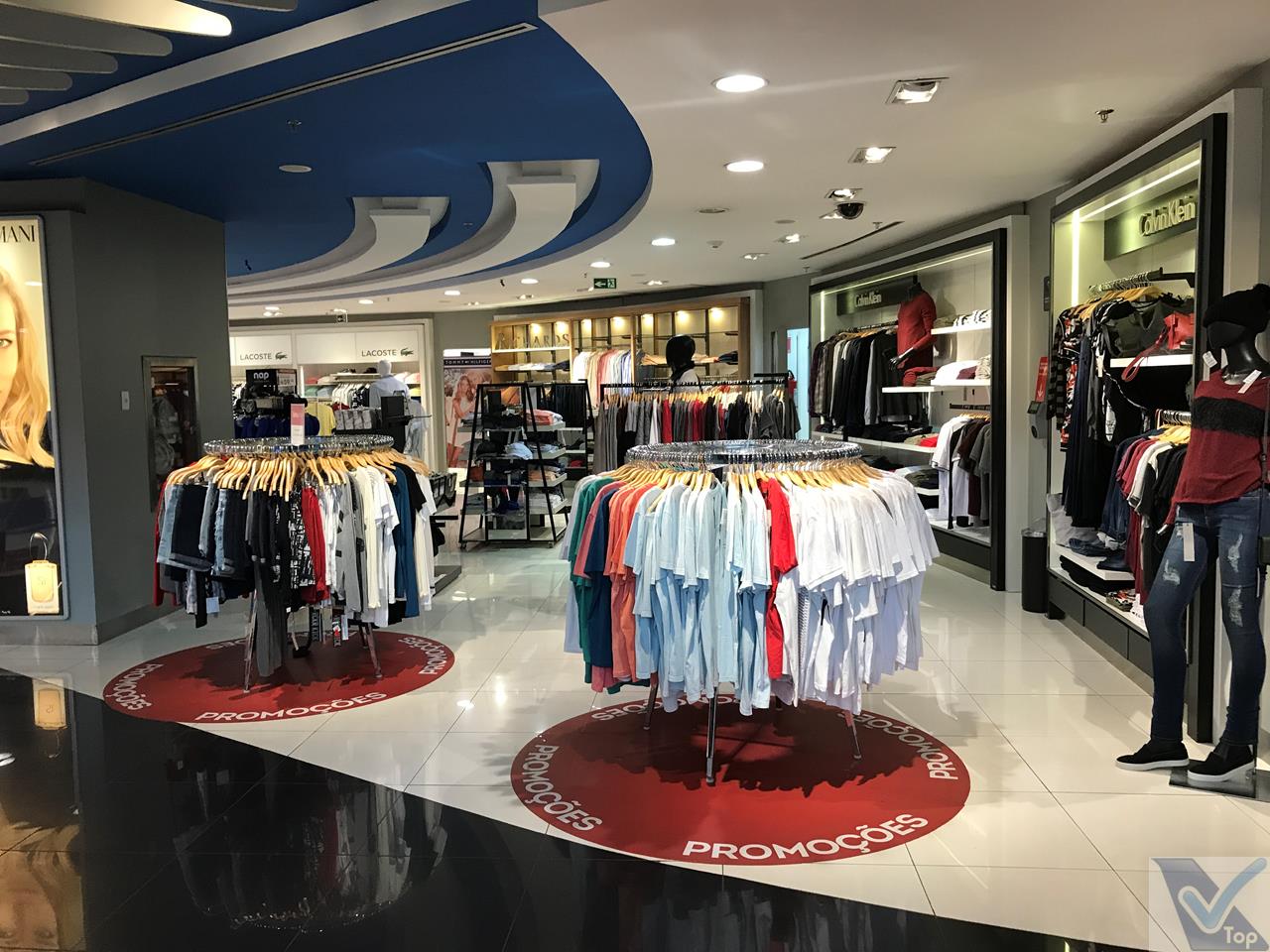 – de frente para a megaloja, também é possível apreciar o pátio de manobras que estava quase deserto, só haviam 02 aeronaves: o Embraer da AZUL pintado de amarelo (PR-AUA, apelido “Azul Canarinho“) que estava partindo para uma missão naquele momento e um Boeing 737-800 da GOL