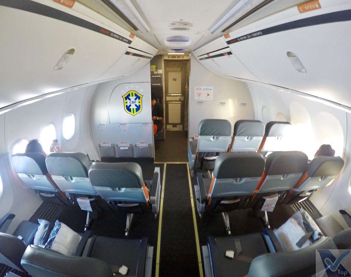 – na parte inferior da estrutura das poltronas, uma tomada universal está instalada, portanto, foi possível carregar celular durante o voo; além disso, o equipamento da GOGO que permite acesso a Internet a bordo estava instalado nesta aeronave