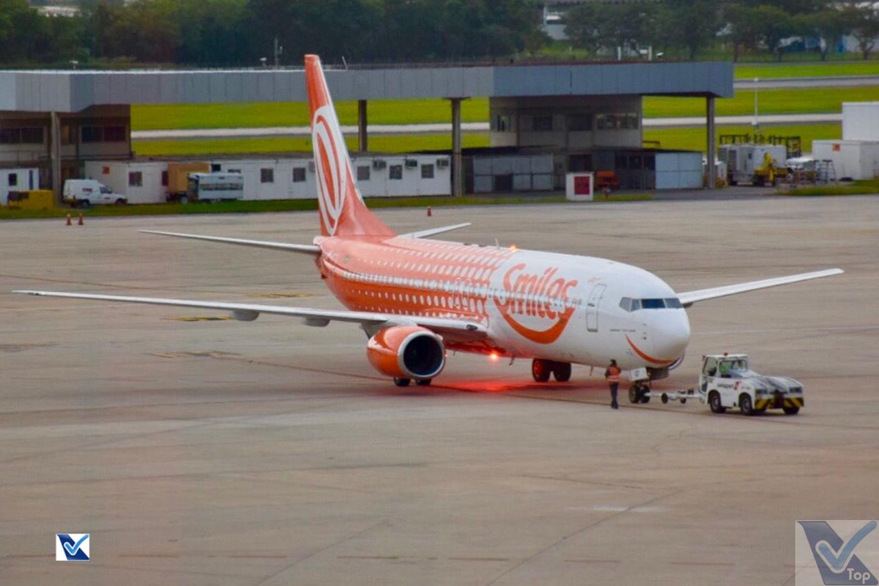 – saímos acelerados em direção ao Portão C50, que fica a cerca de 05 minutos de caminhada, onde o Boeing 737-800, prefixo PR-GUK (que voa com a GOL desde setembro de 2011) estava estacionado; esta aeronave fez parte de uma grande festa em março de 2017, pois carrega uma pintura especial da CBF, com adesivos de “#VoaCanarinho”; na parte interna da cabine, um grande adesivo do escudo da Confederação confirma que estamos no avião que tem a missão de transportar nossa seleção de futebol
