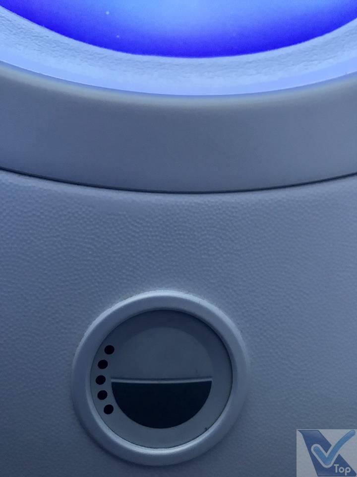 – outra característica do B787 são as suas janelas com controle da luminosidade: não tem aquela tradicional cortina que sobe e desce, um interruptor redondo precisa ser usado para aumentar ou diminuir a quantidade de luz que entra na cabine