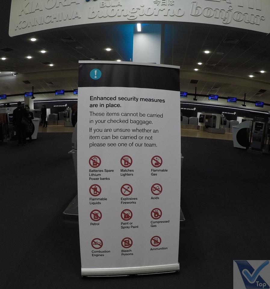 – um elevador privativo dentro desta área reservada é a melhor opção para chegar nos controles de segurança do aeroporto de Auckland; subindo apenas um andar, a porta do elevador abre quase em frente a um balcão com um agente que faz o controle do passaporte e com um atalho para os aparelhos de raio-x