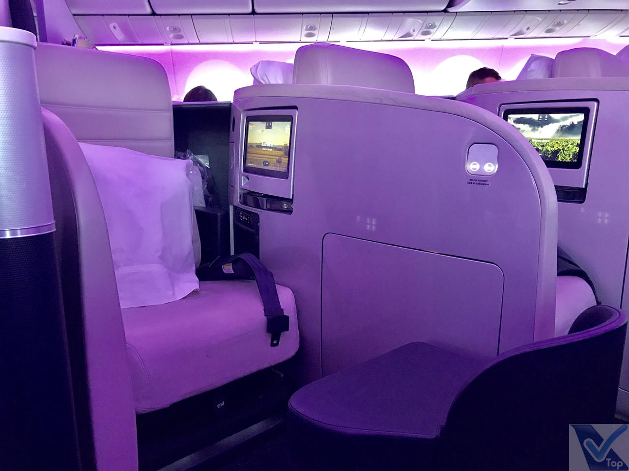 – os B787-9 da ANZ está configurado com 18 lugares na classe Business Premier (são mais 21 assentos na Premium Economy e 263 na Econômica), são 06 fileiras de 03 assentos, com isso cada passageiro tem acesso livre ao corredor, uma ótima estrutura de cabine neste aspecto; reservei o assento 6K, na última fileira da cabine Executiva do B787, lado direito