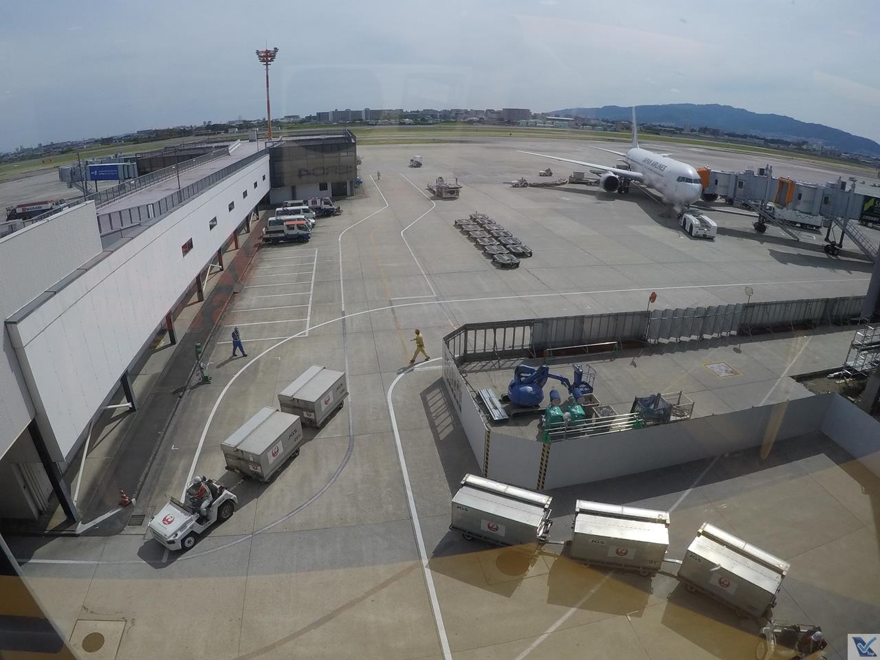 – uma bela vista para o pátio de manobras logo chamou a minha atenção, oportunidade para tirar fotos das aeronaves que passam por Osaka, que neste dia, tinha um bonito final de tarde com sol