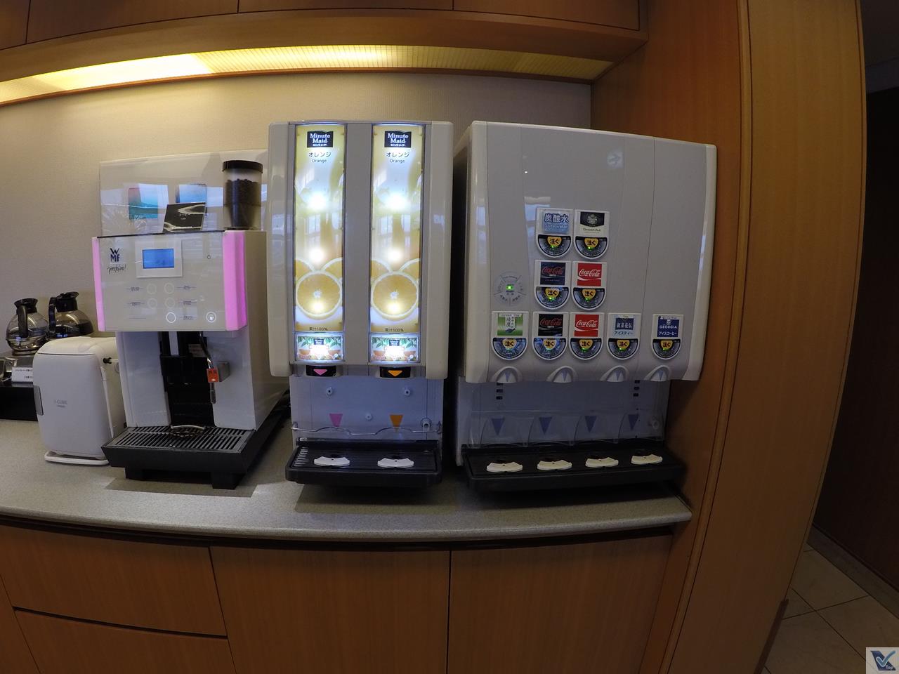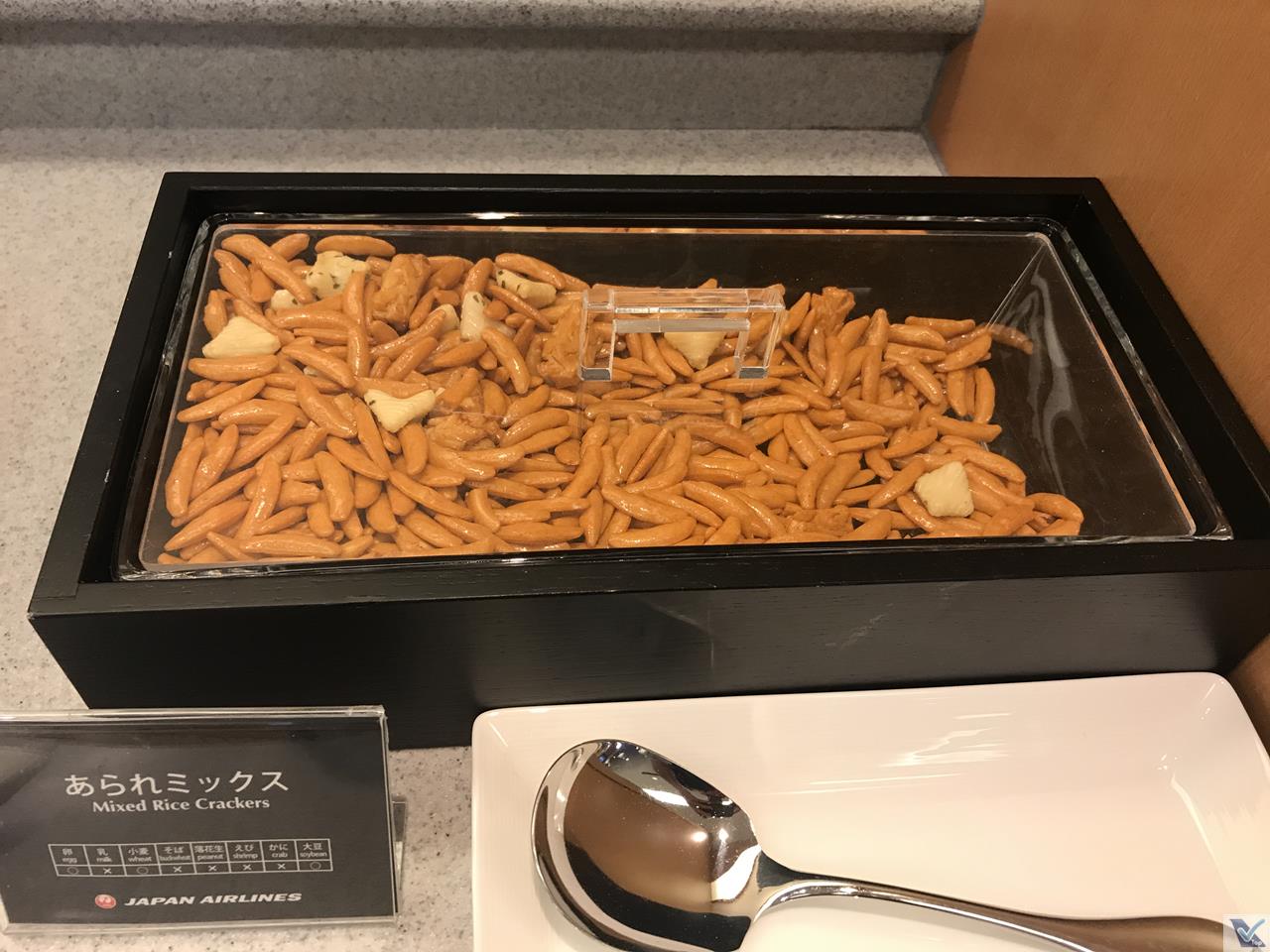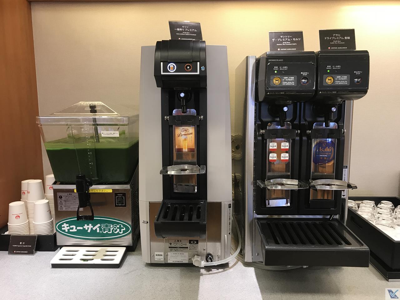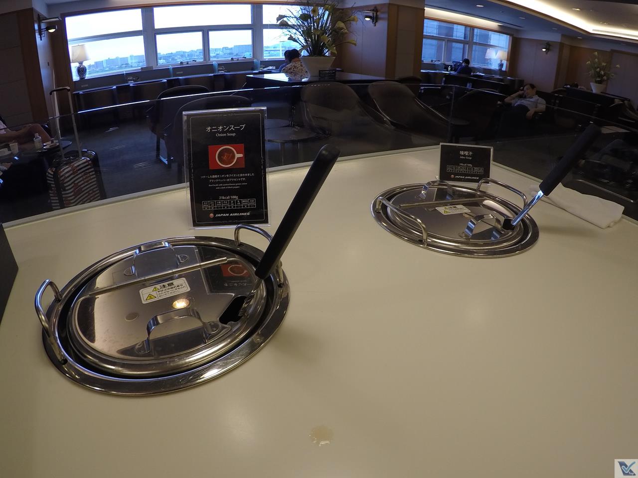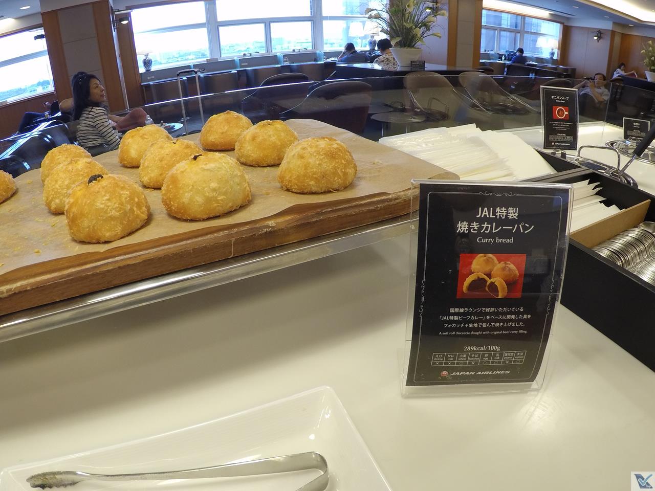 – chegou a hora de matar a fome no buffet oferecido pela JAL em sua Sala VIP: sem sofisticação e sem grande variedade, a principal atração era um bolinho de curry com carne, simplesmente delicioso; além disso, para comer, sopas tradicionais da culinária japonesa, bolinhos de arroz e um biscoitinho salgado; para beber: refrigerantes, sucos e 03 tipos de cerveja (vinho e champagne não eram oferecidos), além de uma máquina de café