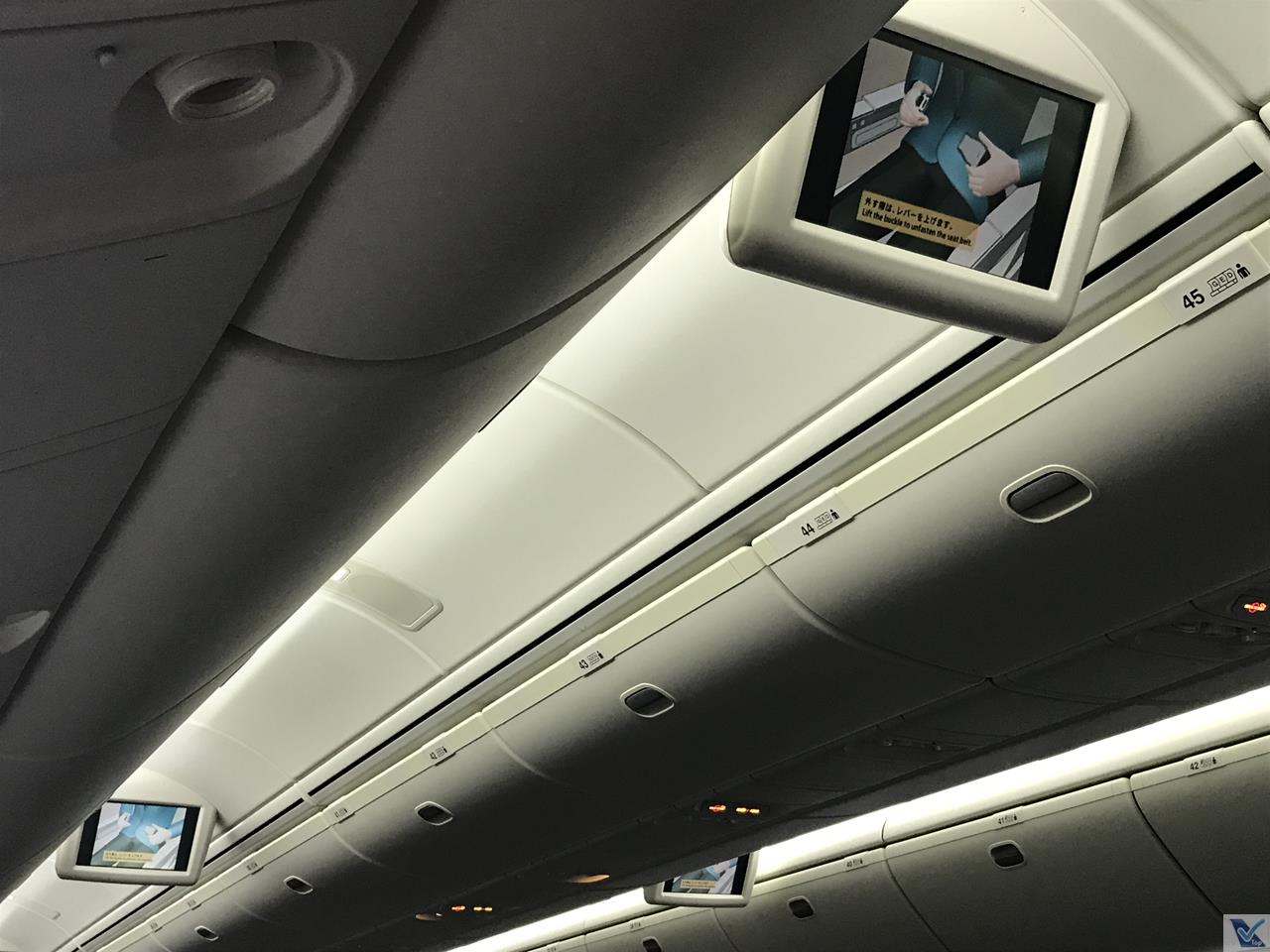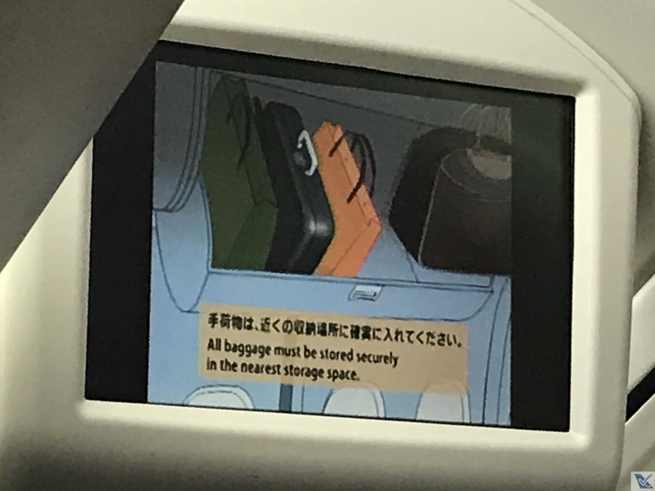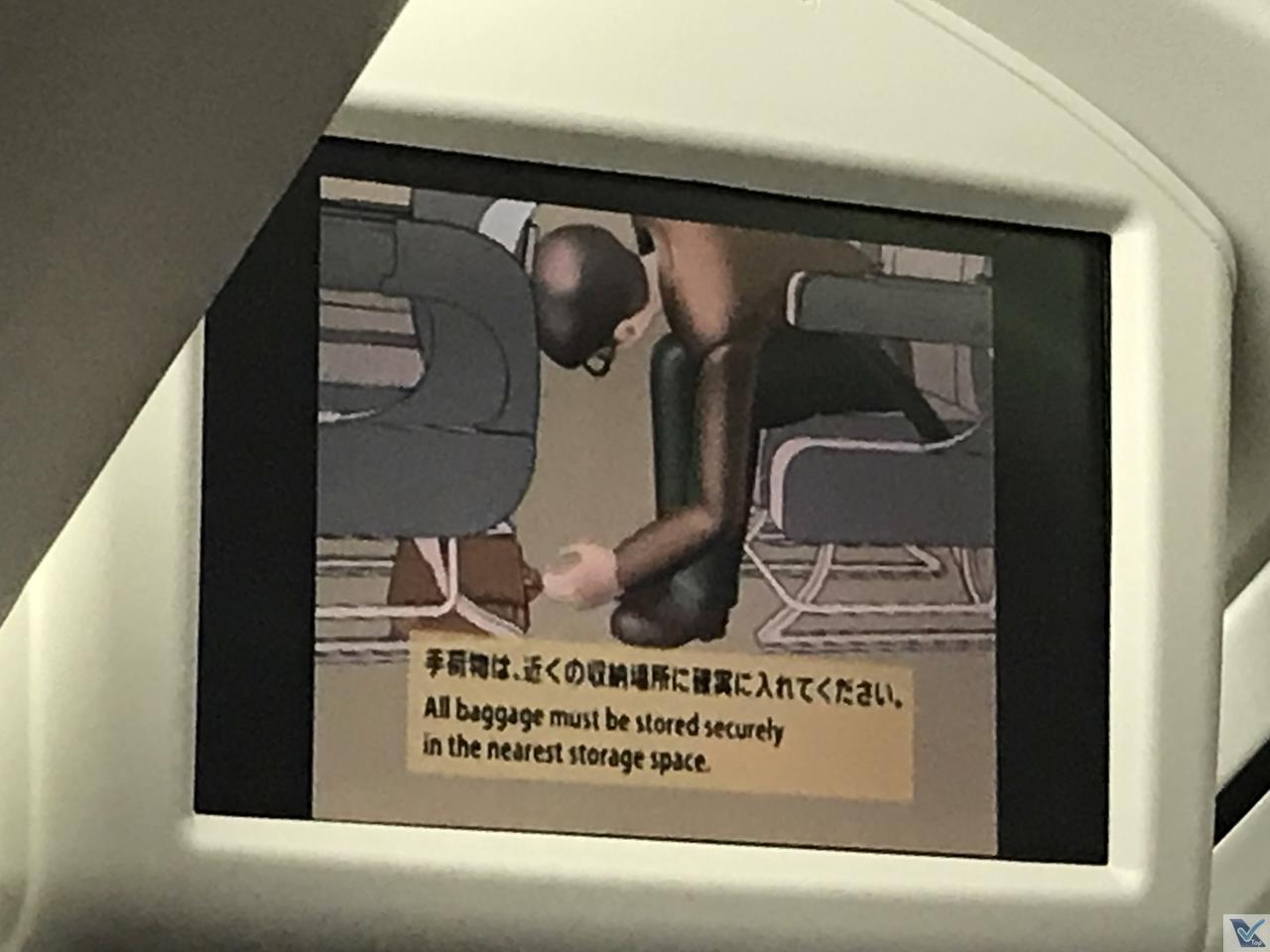 – as obrigatórias instruções de segurança são exibidas nas telas do sistema de vídeo, com áudio em japonêslegendas em inglês