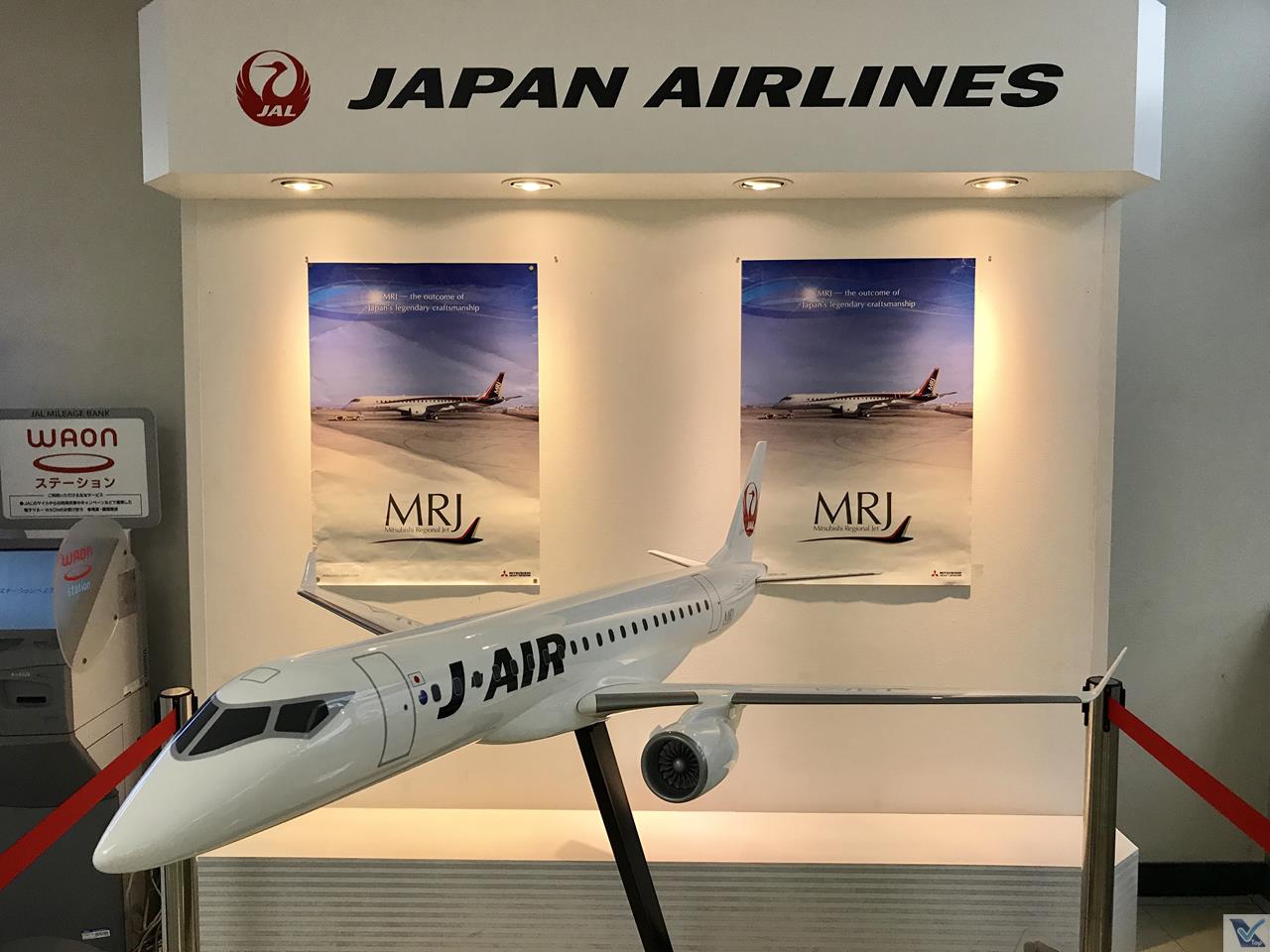 – o saguão de embarque o aeroporto Itami tem uma estrutura simples, muito bem sinalizado; como é comum no Japão, a adminstração instalou uma “smoking room“, onde os dependentes de fumo podem saciar seu vício em um ambiente isolado; no meio do caminho, reparei em uma enorme maquete do avião que vai brigar com os E-Jets fabricados pela nossa Embraer e que está sendo desenvolvido pela japonesa Mitsubishi – MRJ: a JAL será o cliente-lançador deste modelo de aeronave