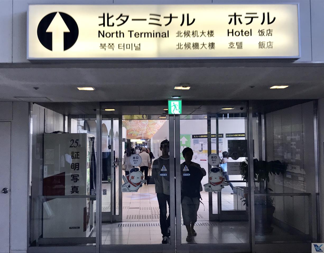 – um viaduto permite o acesso da estação do monorail ao terminal de passageiros, com uma ampla visão do prédio; as operações da JAL estão concentradas no Terminal Norte, enquanto que a ANA utilizar o Terminal Sul, o que é sinalizado por placas e adesivos no chão