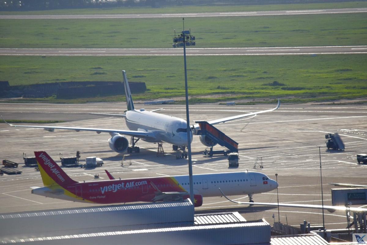 – na minha rápida passagem pelo (lindo) Vietnã, fiquei hospedado em um hotel situado quase em frente ao Aeroporto de Ho Chi Minh City (sigla SGN, que está associada ao antigo nome da cidade – Saigon); no último andar do prédio tem um bar e piscina (rooftop) onde há uma vista privilegiada do terminal; fiquei lá por alguns minutos tomando uma 333 (uma marca de cerveja local) e registrando aviões da Vietnam Airlines, JetStar Pacific, VietjetAir (que me levou de HAN até SGN, confira a avaliação completa AQUI) e Tigerair em procedimentos de decolagem e pouso