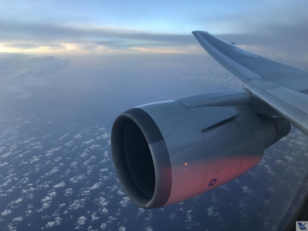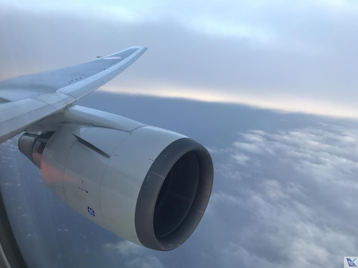 – já estava claro lá fora, o sol já tinha aparecido, ou seja, uma boa oportunidade para registrar os motores da GE deste B767 em serviço a mais de 10 quilômetros de altitude