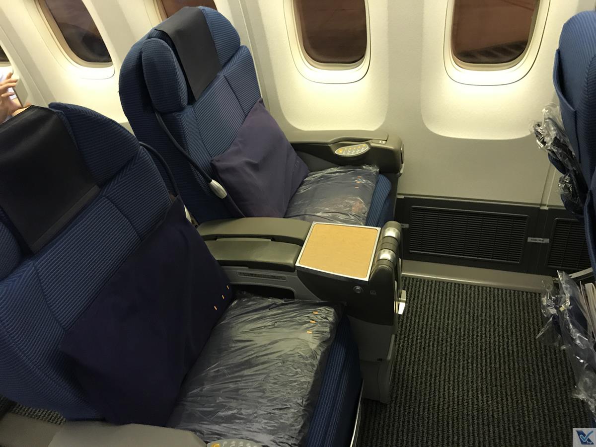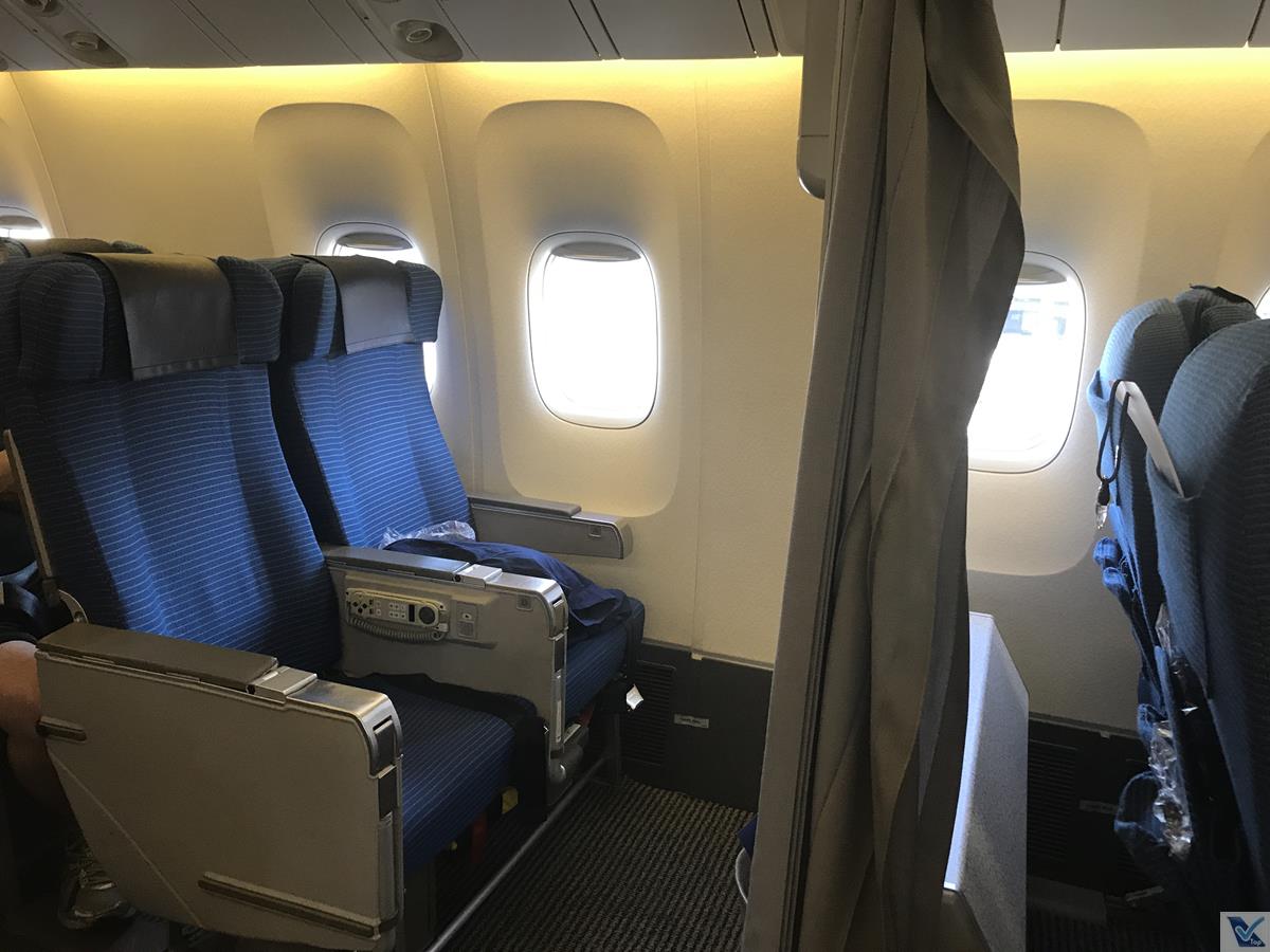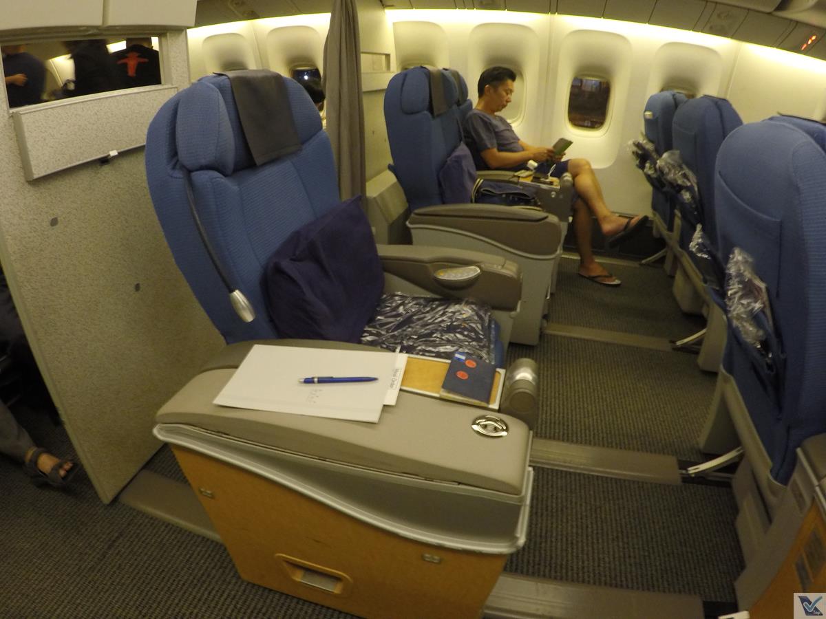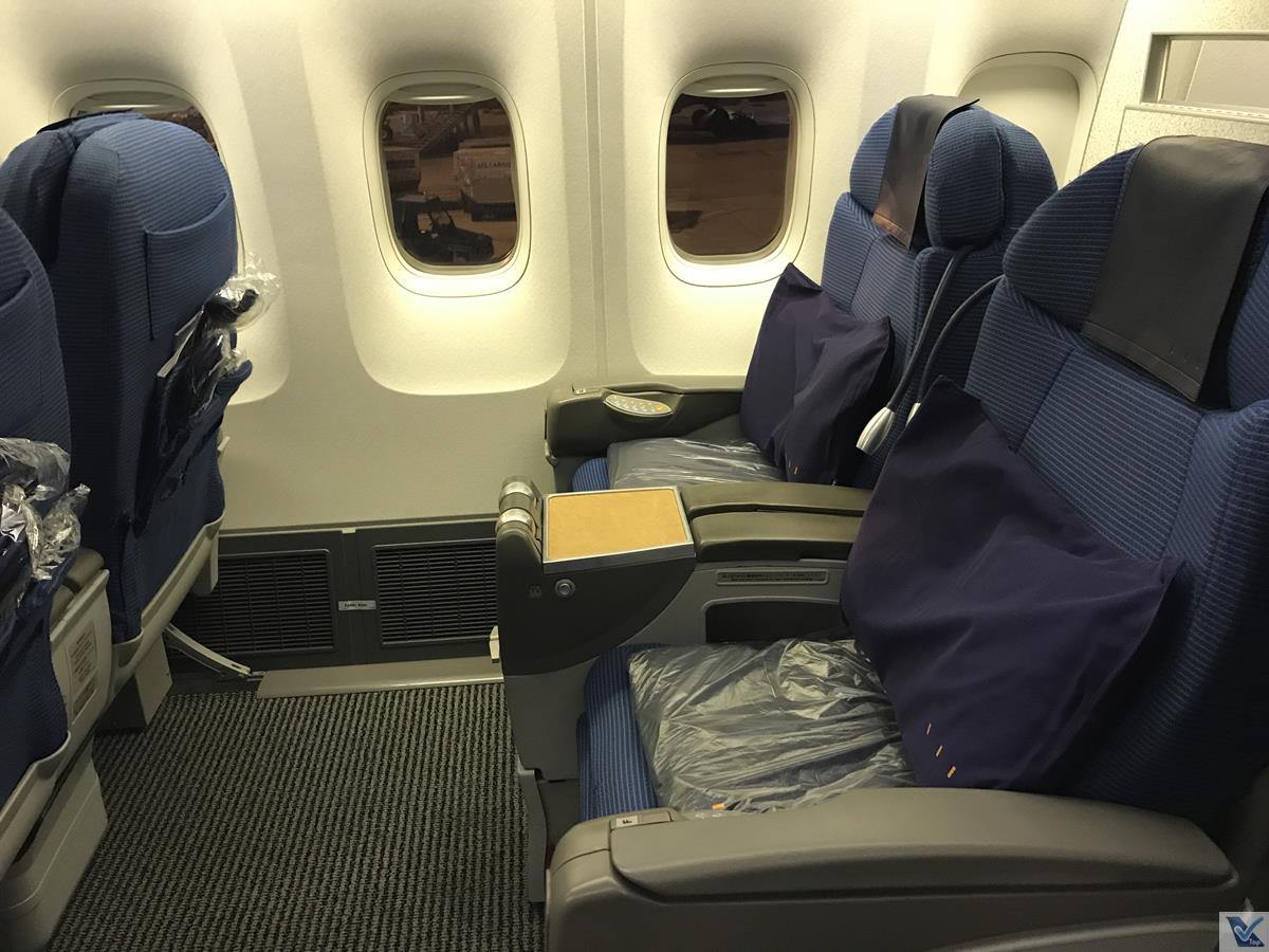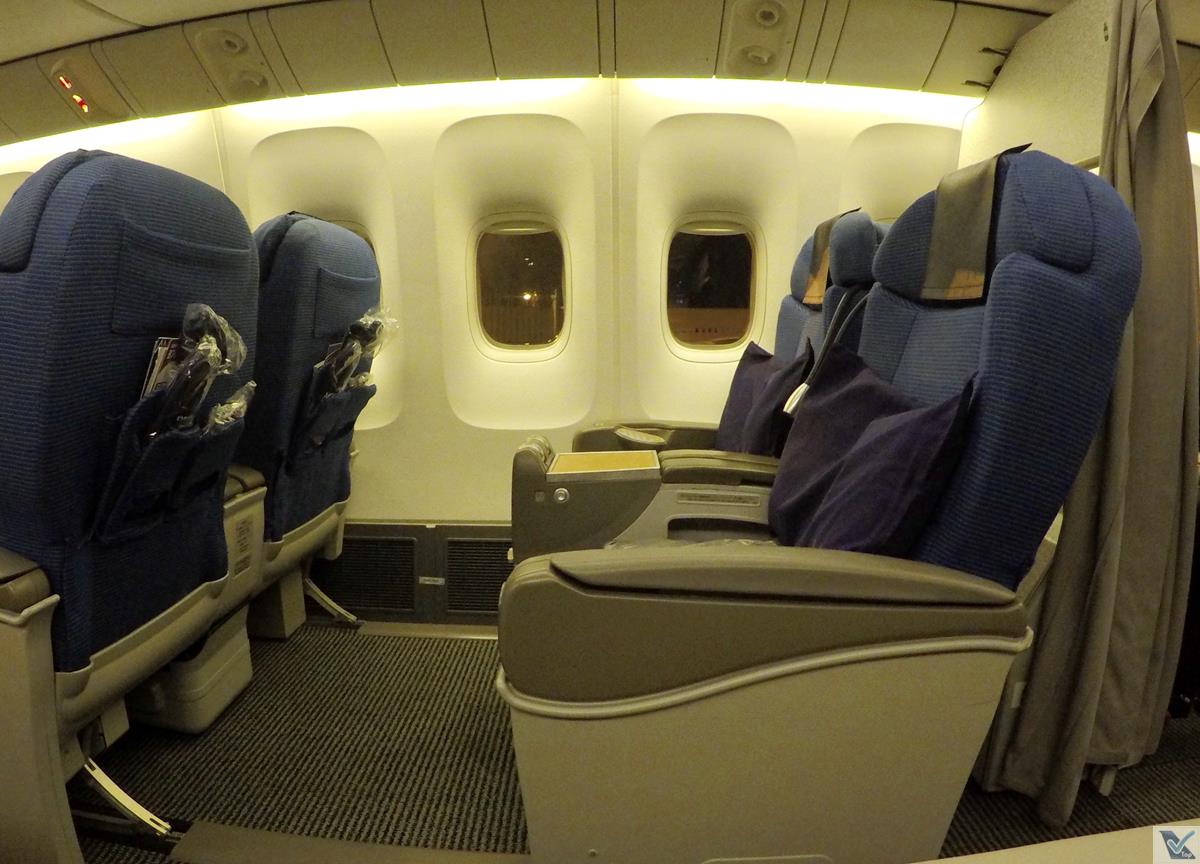 – a configuração de cabine da classe Executiva deste Boeing era bem interessante e inédita para mim: 2 x 1 x 2 (um único assento na parte central é incomum, os 767s da LATAM que voam no Brasil, por exemplo, estão configurados na disposição 2 x 2 x 2); são 07 fileiras, totalizando 35 lugares nesta classe de serviço; neste voo 20 deles estavam ocupados