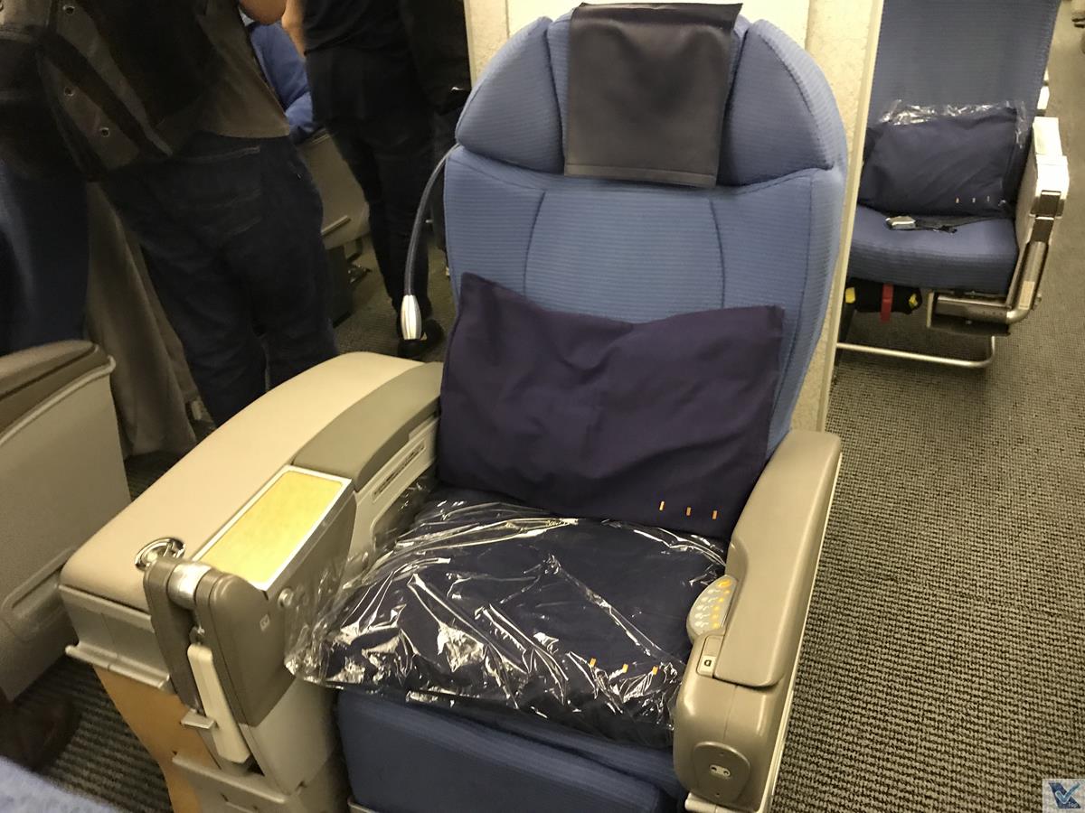 – os assentos (que são revestidos de tecido azul) eram de geração antiga e ultrapassada, me lembrou muito a cabine de uma viagem que fiz com a saudosa VARIG para Cancun a bordo de um clássico MD-11 em 2004