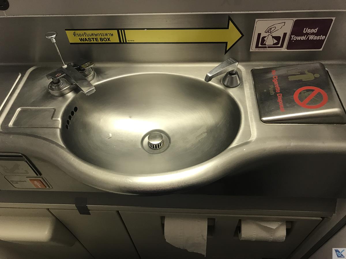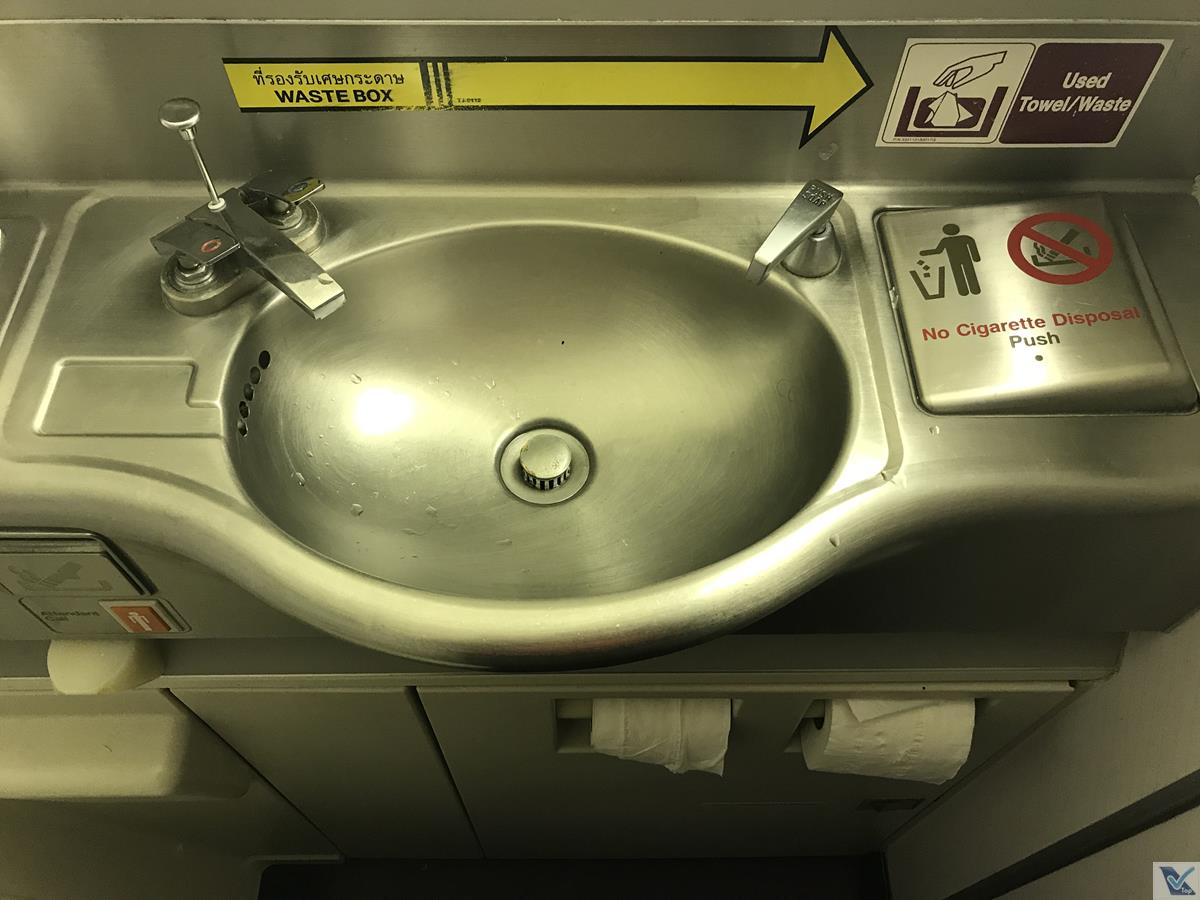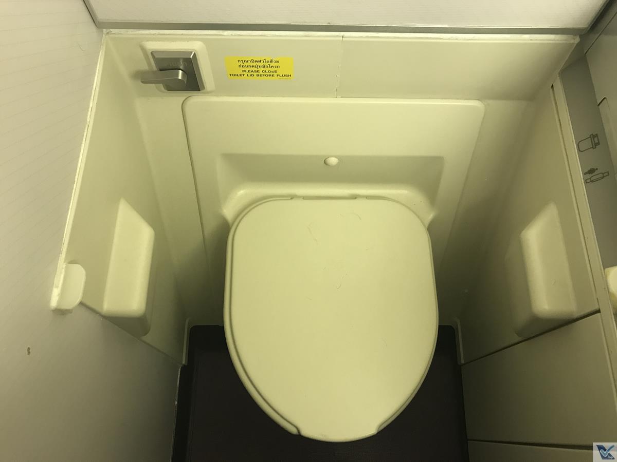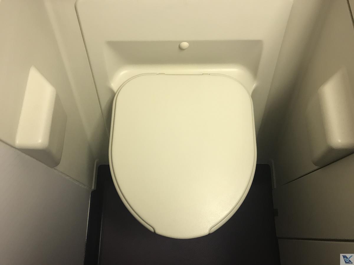 – para os passageiros da classe Executiva, 02 banheiros exclusivos podem ser utilizados: um deles fica na parte “de baixo” e o outro fica lá no “upper deck“; não são apertados como aqueles que encontramos nos aviões de corredor único, mas se compararmos com aqueles instalados no Airbus A380, estes do B747 são minúsculos