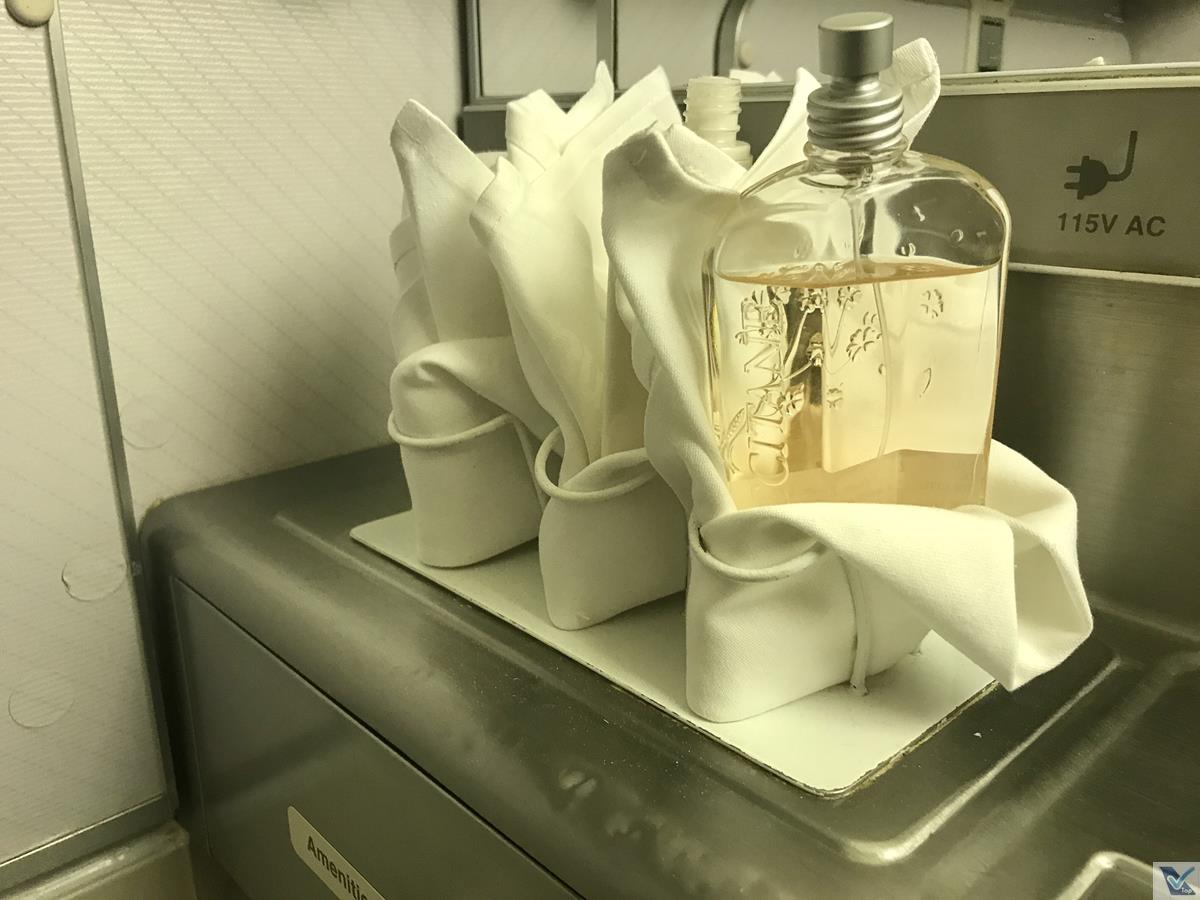 – durante o voo, uma cortina roxa que separa a cabine da classe Executiva da Primeira Classe fica fechada a tempo todo, só sendo reaberta para o procedimento de pouso
