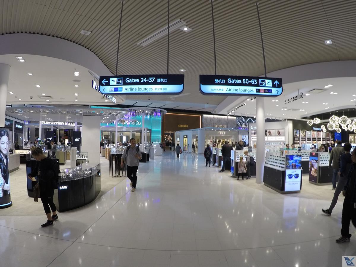 – era uma manhã muito movimentada de 6ª feira; é preciso preencher um cartão de saída da Austrália, basicamente declarando que você não está levando mais de 10.000 dólares para fora do país; peguei um pouco de fila no controle de passaporte e usei um sistema experimental de catraca eletrônica para passageiros estrangeiros, que funcionou muito bem; no controle do raio-x, dei sorte, a fila foi pequena, em poucos minutos, eu já estava apto a curtir a parte “comercial” do Aeroporto de Sydney