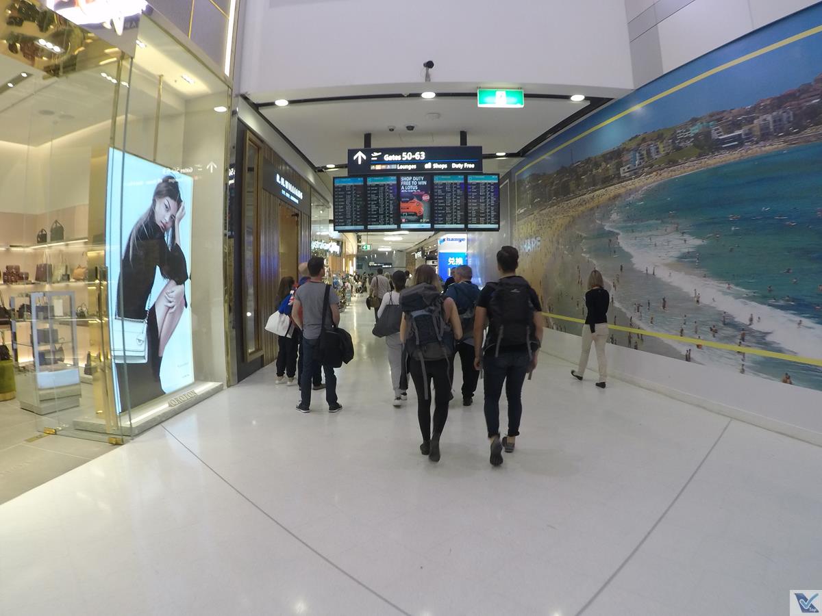 – eu estava hospedado a 500 metros da estação Wynyard, na zona central de Sydney, portanto, a opção de usar o trem metropolitano da cidade era muito conveniente, prático e seguro para ir ao aeroporto, apesar de não ser barato: gastei 16 dólares australianos (cerca de R$ 40,00) para um trajeto de apenas 20 minutos; a estação no aeroporto é ampla e muito bem sinalizada; com voo marcado para 10:00h, me programei para sair do hotel por volta de 07:40h