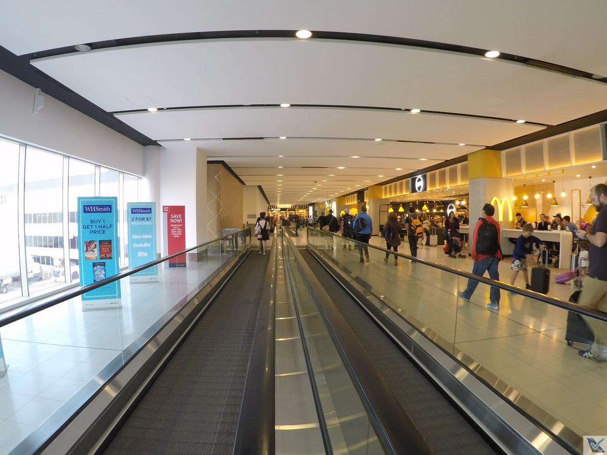 – depois de cerca de 10 minutos de trajeto, alcancei a área do portão de embarque do meu voo, um grande saguão com muito luxo e modernidade, trazendo conforto aos passageiros, que podem se instalar em diversos tipos de cadeiras e mesas; grandes painéis eletrônicos trazem informações das partidas dos voos; além disso, há também cafeterias e lojas, aproveitei e parei em uma livraria para “desovar” as moedas de dólares australianos (que por sinal são enormes e pesadas)