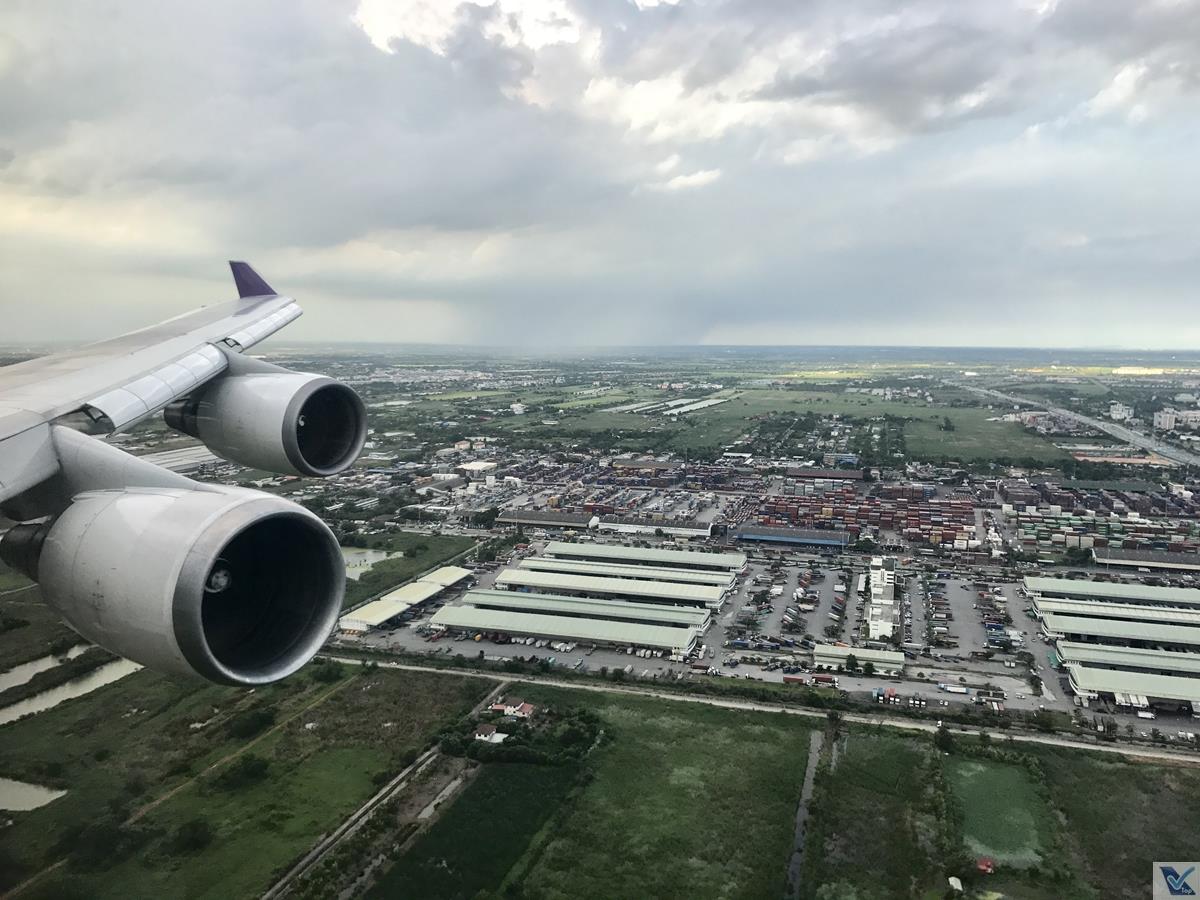 – menos de 05 minutos depois, pousamos em Bangkok, um pouso extremamente suave, mas o gigante de centenas de toneladas precisa de muita pista para desacelerar