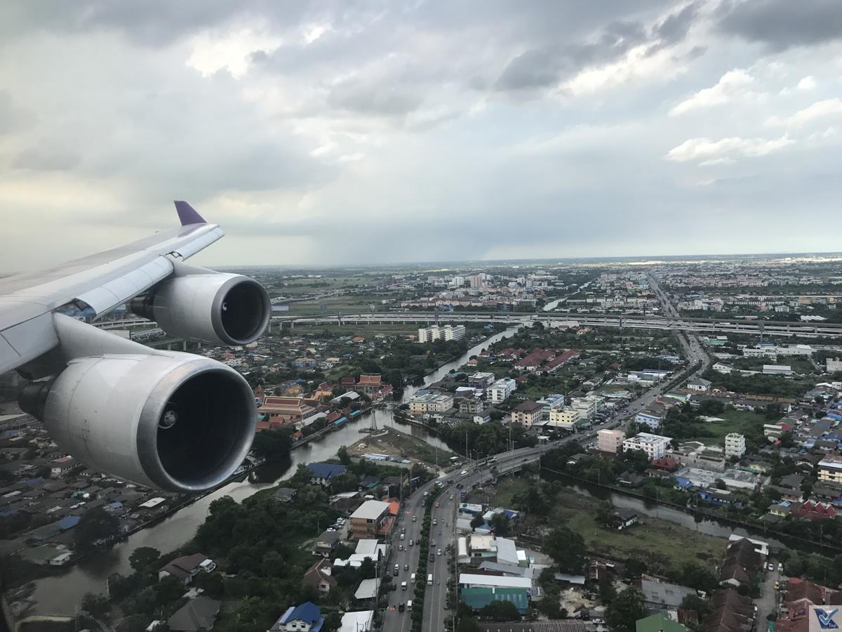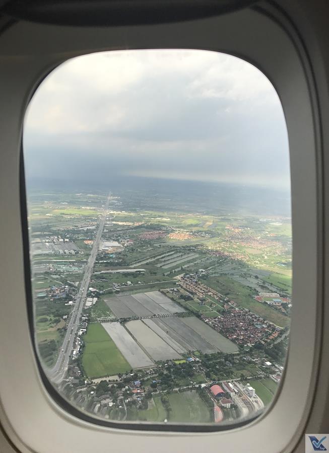 – a cidade de Bangkok tem fuso horário de -03 horas com relação à Sydney; por volta de 16:00h no horário tailândes, passamos por muitas nuvens, o piloto do B747 teve muita habilidade para negociar passagem por elas