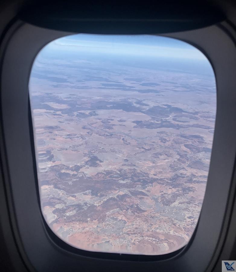 – enquanto aguardava a comida, ao olhar pela janela, vi que sobrevoávamos uma área de vegetação árida do território australiano, uma bela vista