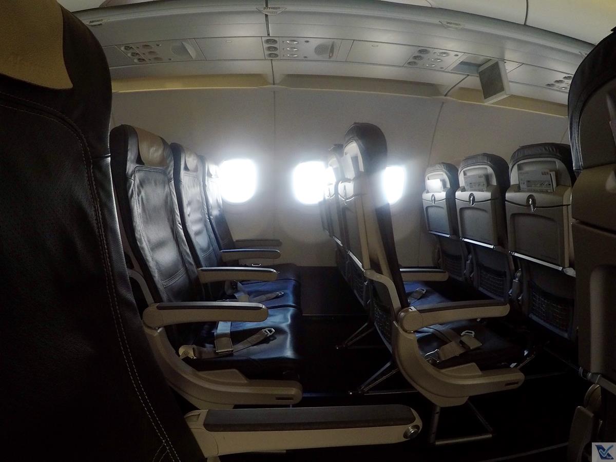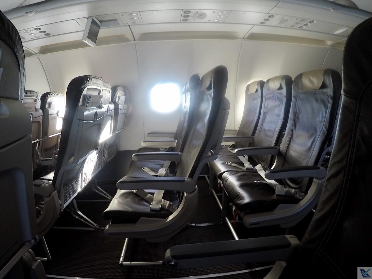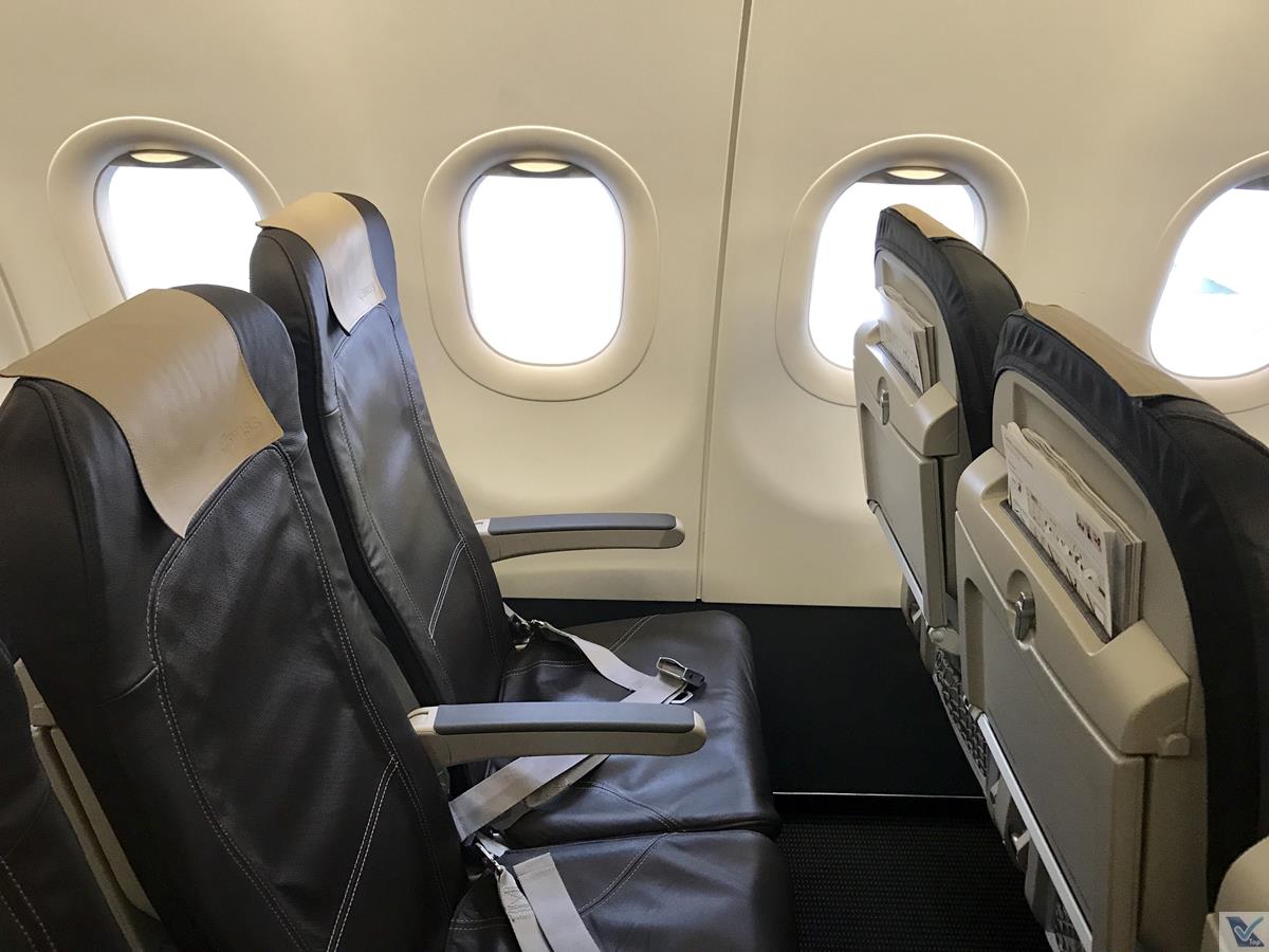 – o A321 é o maior avião de corredor único em produção atualmente e a SWIISS configurou este modelo da seguinte forma, sempre na configuração 3 x 3 (três poltronas de cada lado): as fileiras 1 a 9 são destinadas à Business Class (o grande diferencial é a poltrona do meio, que fica vazia) e às fileiras de 10 a 39 são destinadas à classe Econômica; durante os voos, as 02 cabines são separadas por uma cortina; meu novo assento era o 15F (janela do lado direito da aeronave), mas quando cheguei lá, 02 pessoas já estavam sentadas nas poltronas do corredor e meio, como o voo estava bem vazio (cerca de 30% de ocupação), não quis incomodá-las e fui sentar um pouco mais atrás, na fileira 23, onde não tinha ninguém