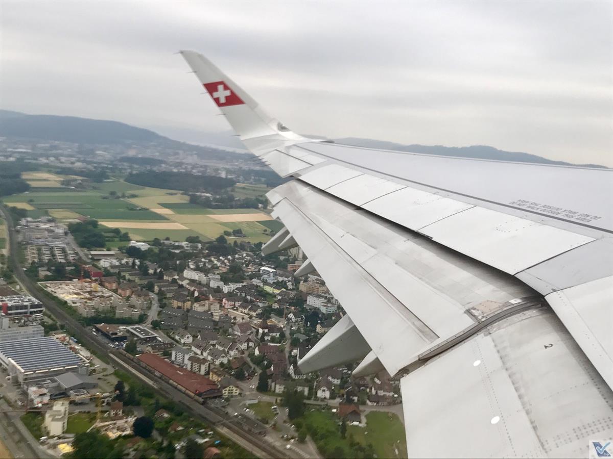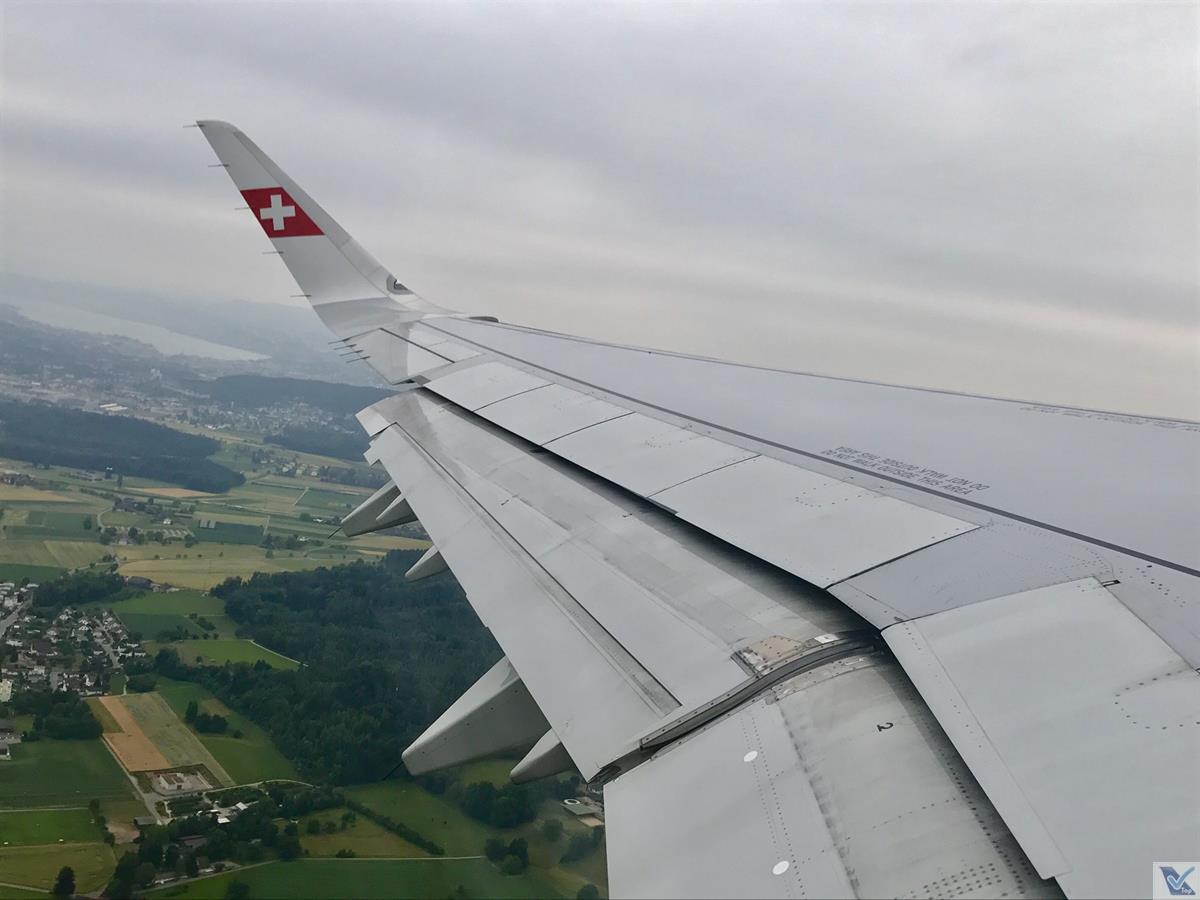 – era uma manhã nublada em Zurich, mas na medida que em que subíamos, as nuvens foram ficando para trás e um céu azul começou a aparecer, permitindo belos registros tendo como destaque o sharklet da asa do A321 com a logomarca da companhia suíça