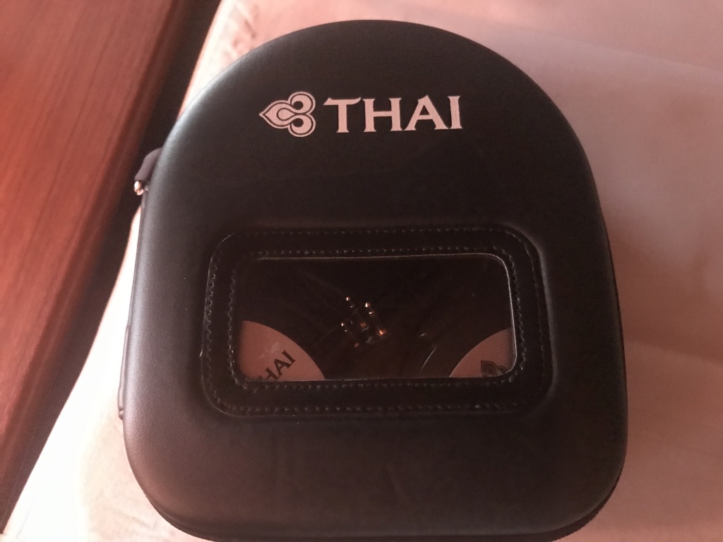– a necessaire já estava disponível em um dos compartimentos da minha “casa” neste Boeing 747, mas era da mesma cor que a THAI me deu no voo do Japão para a Tailândia; pedi para trocar e fui prontamente atendido: a nova era cinza; em seguida, ganhei o pijama para uso durante o voo