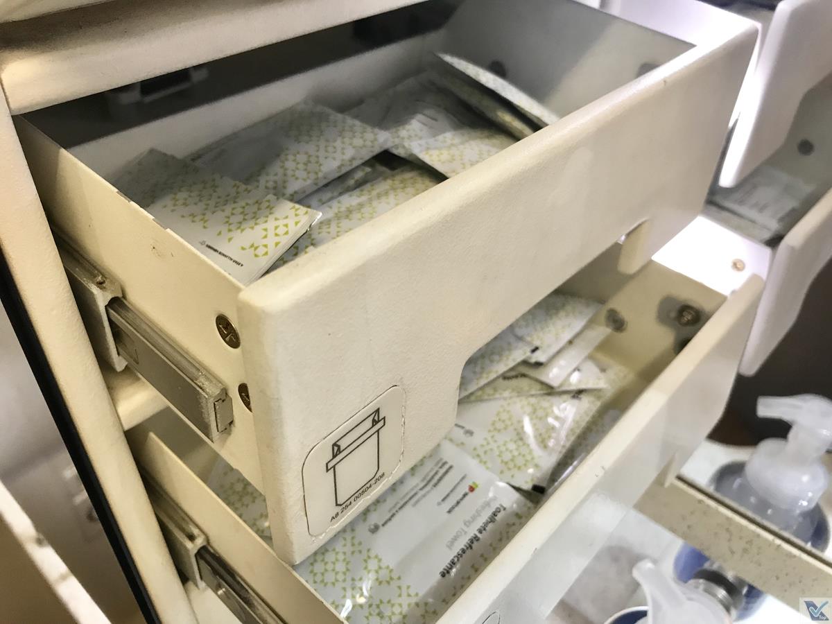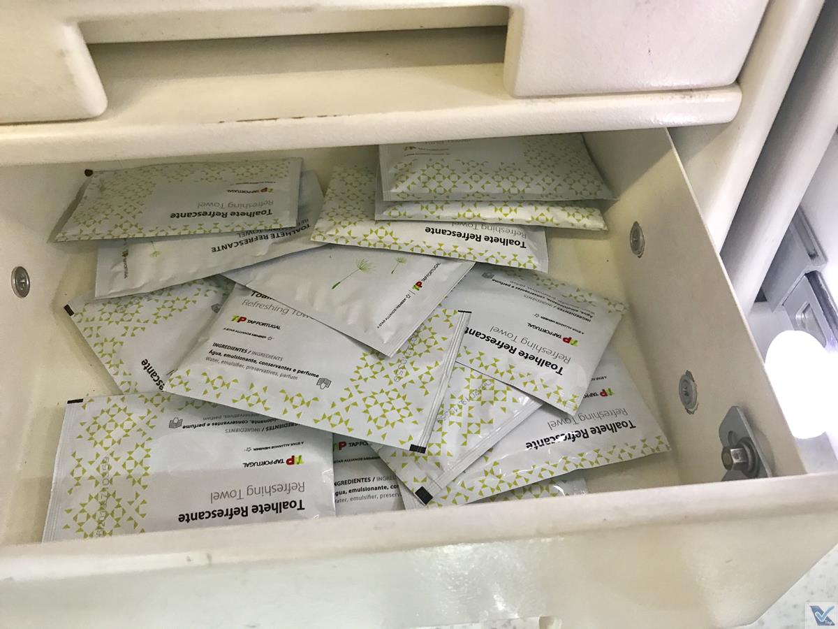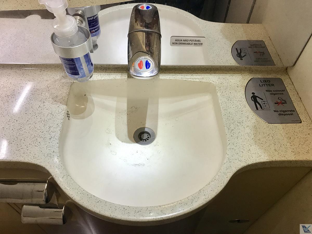 – preferi ir logo ao banheiro antes do jantar ser servido; de bom tamanho, lencinhos umedecidos eram oferecidos em 02 gavetinhas do lado esquerdo da pia; me chamou a atenção que, mesmo sendo inicio do voo, ele estava sujo