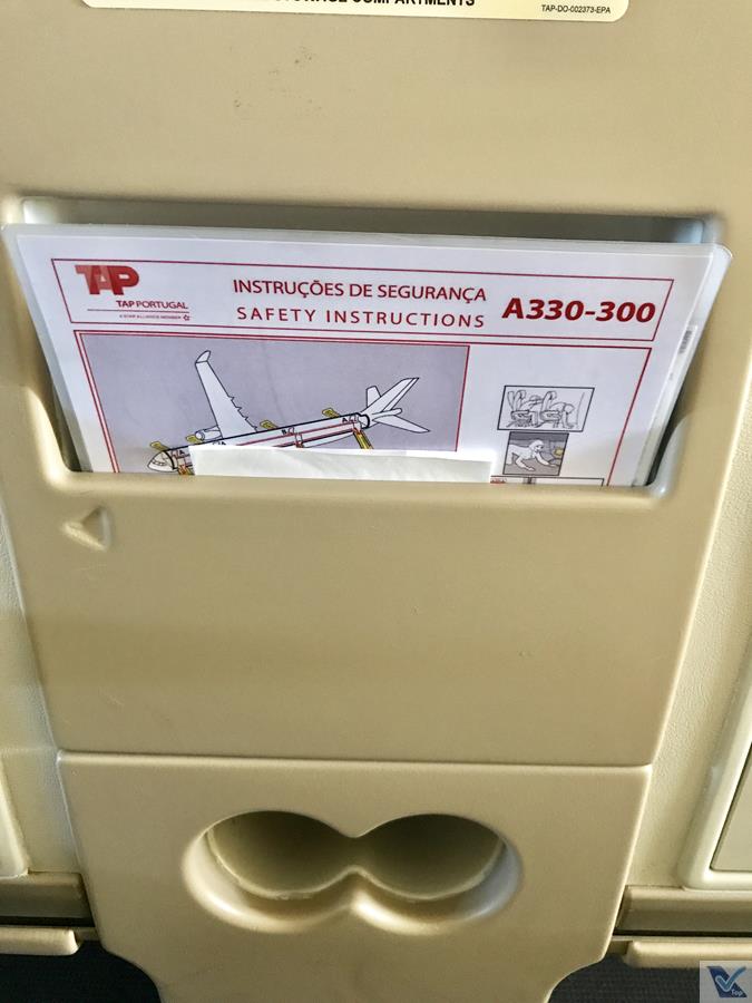 – na estrutura da poltrona da frente, há 02 compartimentos para que os passageiros guardem objetos pessoais, além de um porta-garrafas, do cartão com as instruções de segurança do A330 e da revista de bordo da TAP