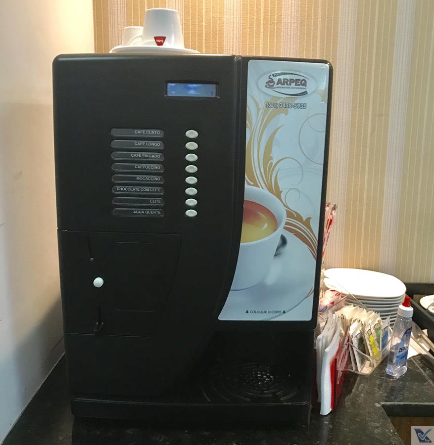 – o buffet oferecido era bem básico, com alguns mini-sanduíches e pacotinhos de biscoitos; uma geladeira com opções de sucos e refrigerantes e uma máquina de café eram as opções de bebida