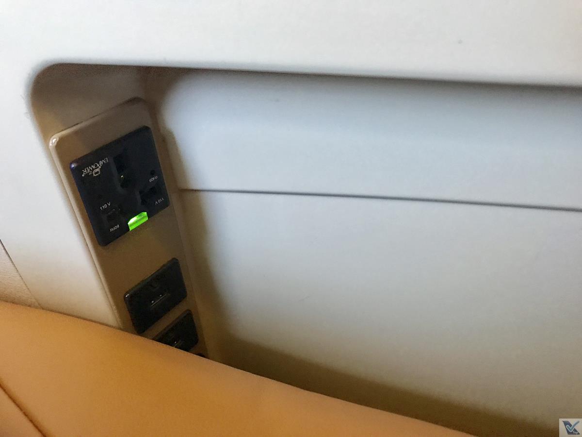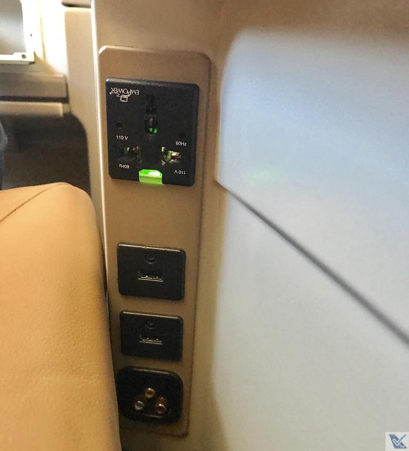 – carregar equipamentos eletrônicos durante o voo não era problema: na estrutura central da poltrona, 01 tomada universal e 02 portas USB estavam instaladas