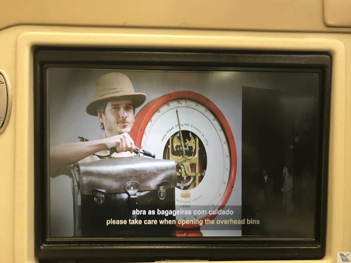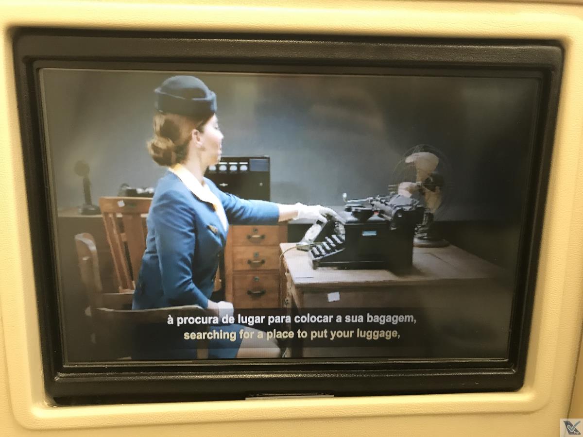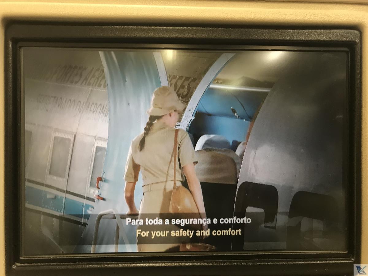 – as instruções de segurança são exibidas no sistema de vídeo individual; a TAP entrou na onda de fazer produções com muita animação e humor, além de contar um pouco da história da companhia de maneira retrô