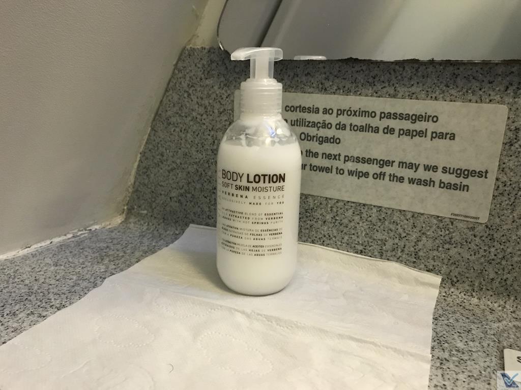 – chegou a hora de escovar os dentes, aproveitando que o banheiro da parte dianteira estava desocupado; o toalete do A320 é sempre um pouco apertado; achei apenas 02 lencinhos umedecidos perdidos na gavetinha dos sachês de sabonete líquido