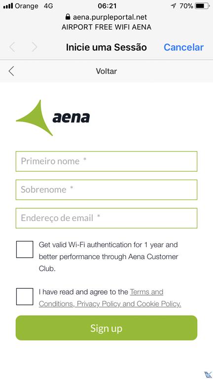 – a administração do aeroporto oferece Wi-Fi gratuito a todos os passageiros, bastando fornecer algumas informações básicas e aceitar as condições de uso